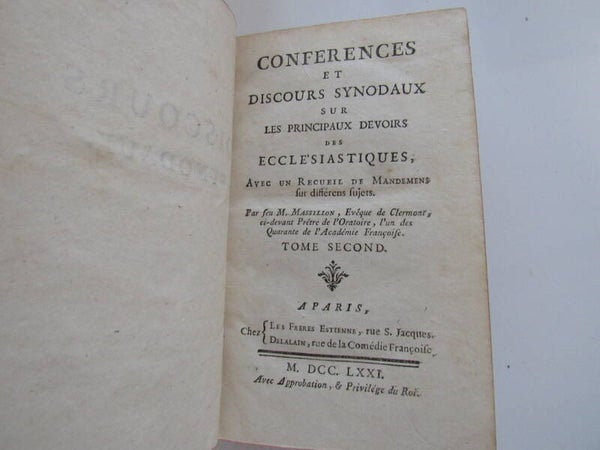 1771 - Conferences et Discours Synodaux by Jean Baptiste Massillon (Two Volumes)