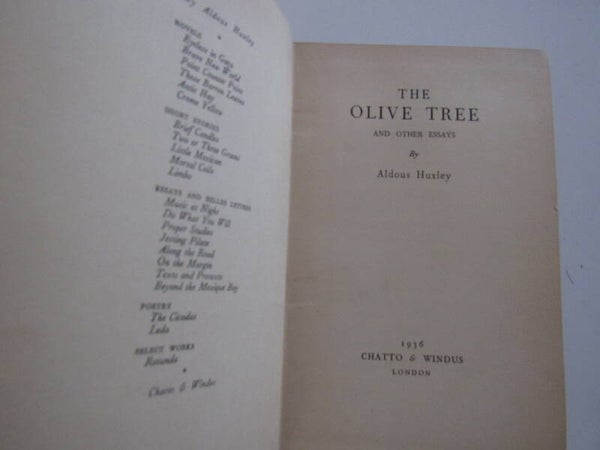 Contents: T.H. Huxley as a Literary Man, Modern Fetishism, Literature and Examinations, English Snobbery, Time and the Machine, New-Fashioned Christmas, Historical Generalizations, Crébillon the Younger, Justifications, D.H. Lawrence, B.R. Haydon, Waterworks and Kings, In a Tunisian Oasis & The Olive Tree.