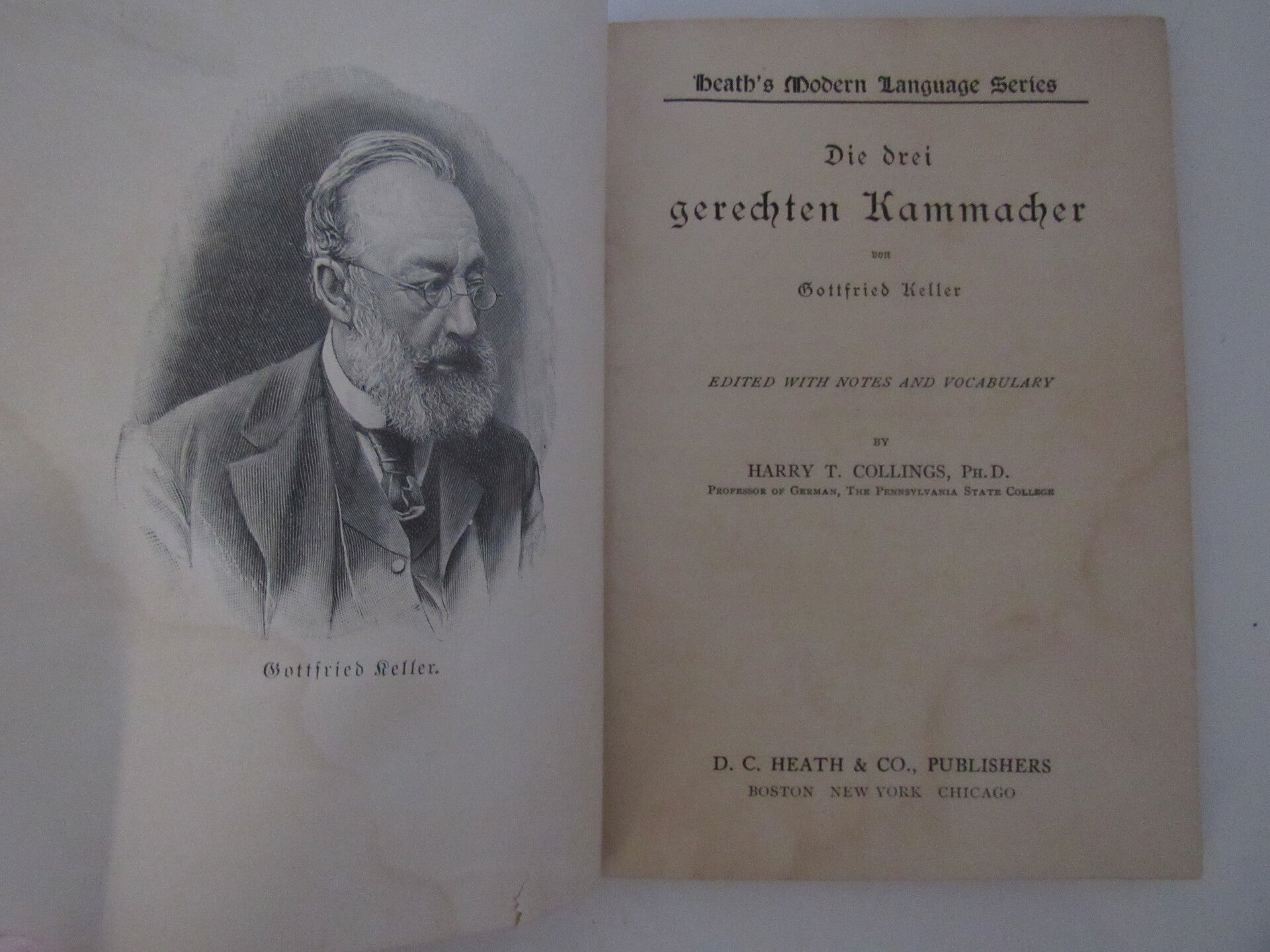 Die drei gerechten Kammacher, von Gottfried Keller, ed., with notes and vocabulary, by Harry T. Collings. Keller is, according to the introduction, known as the Shakespeare of the Novelle.