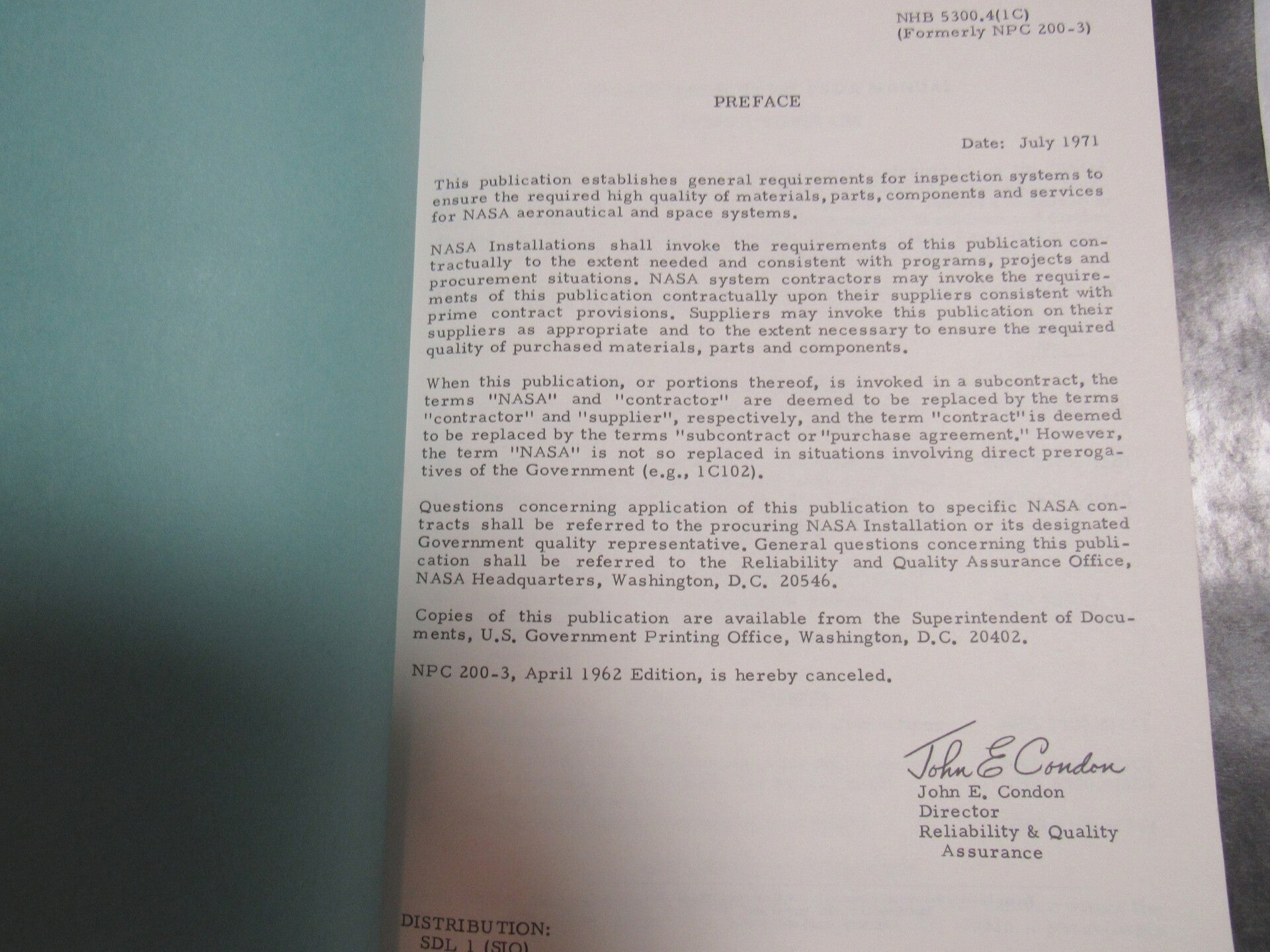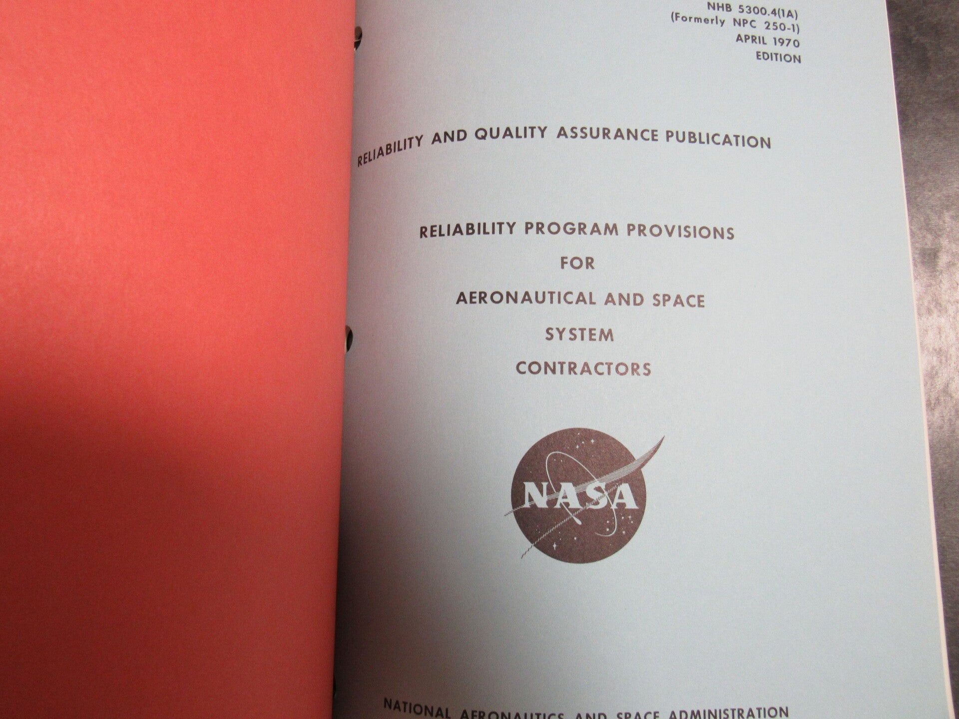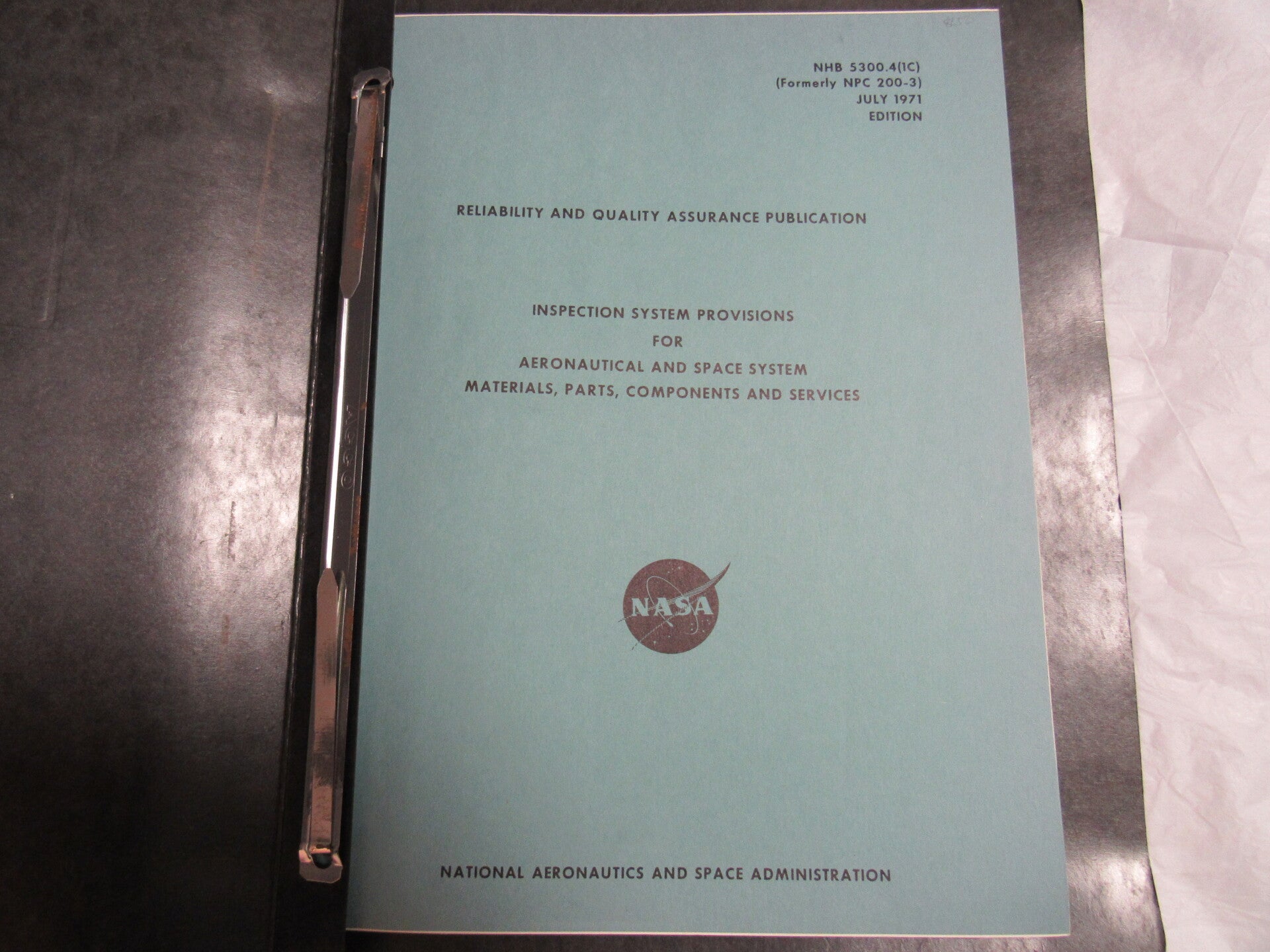 Three orginal technical notes published by NASA, bound. Three publications outline quality control measures and specs for aeronautical and space system material, parts, and contractors.