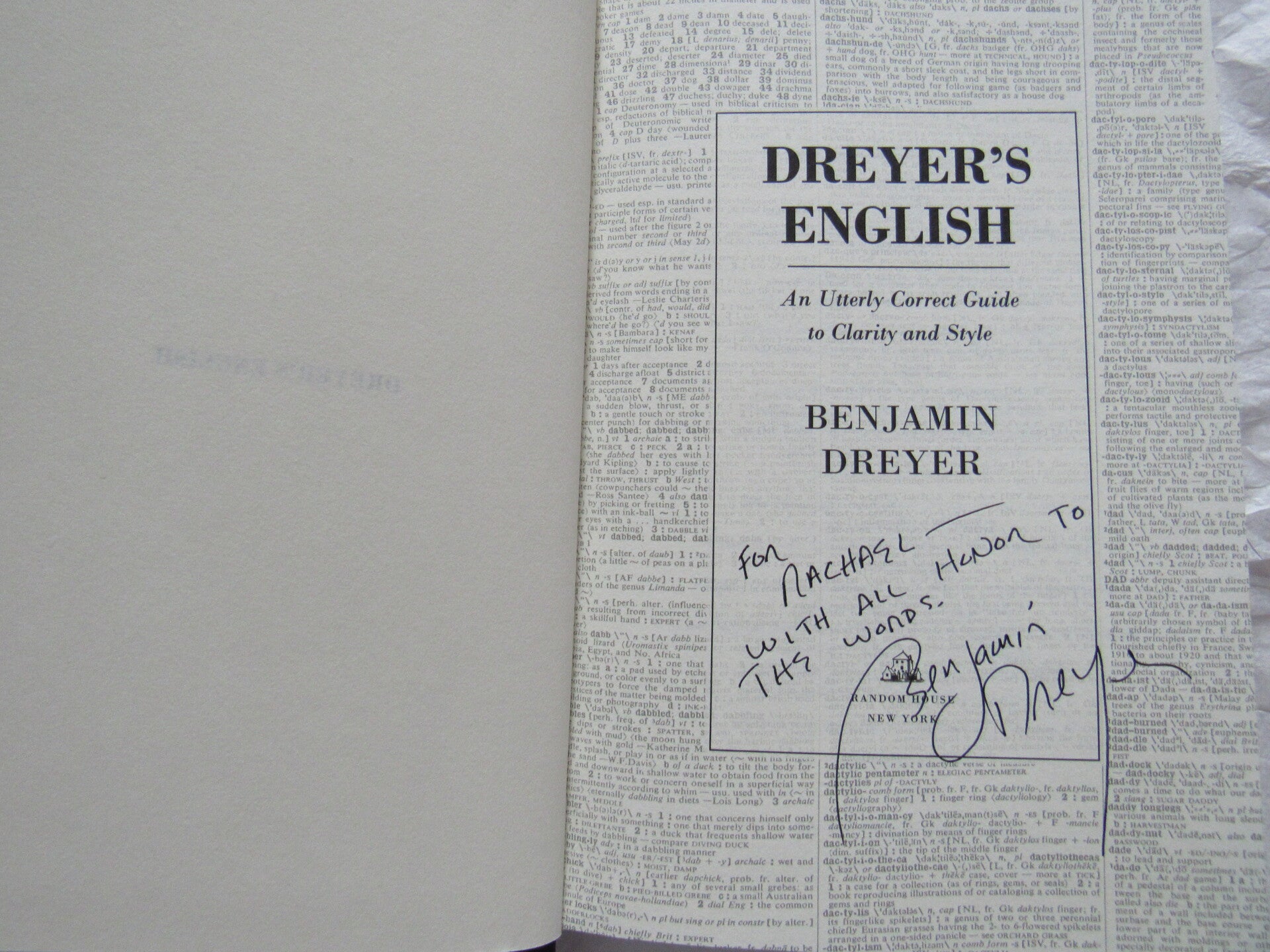 Inscribed "For Rachael, - with all honor to the words - Benjamin Dreyer."