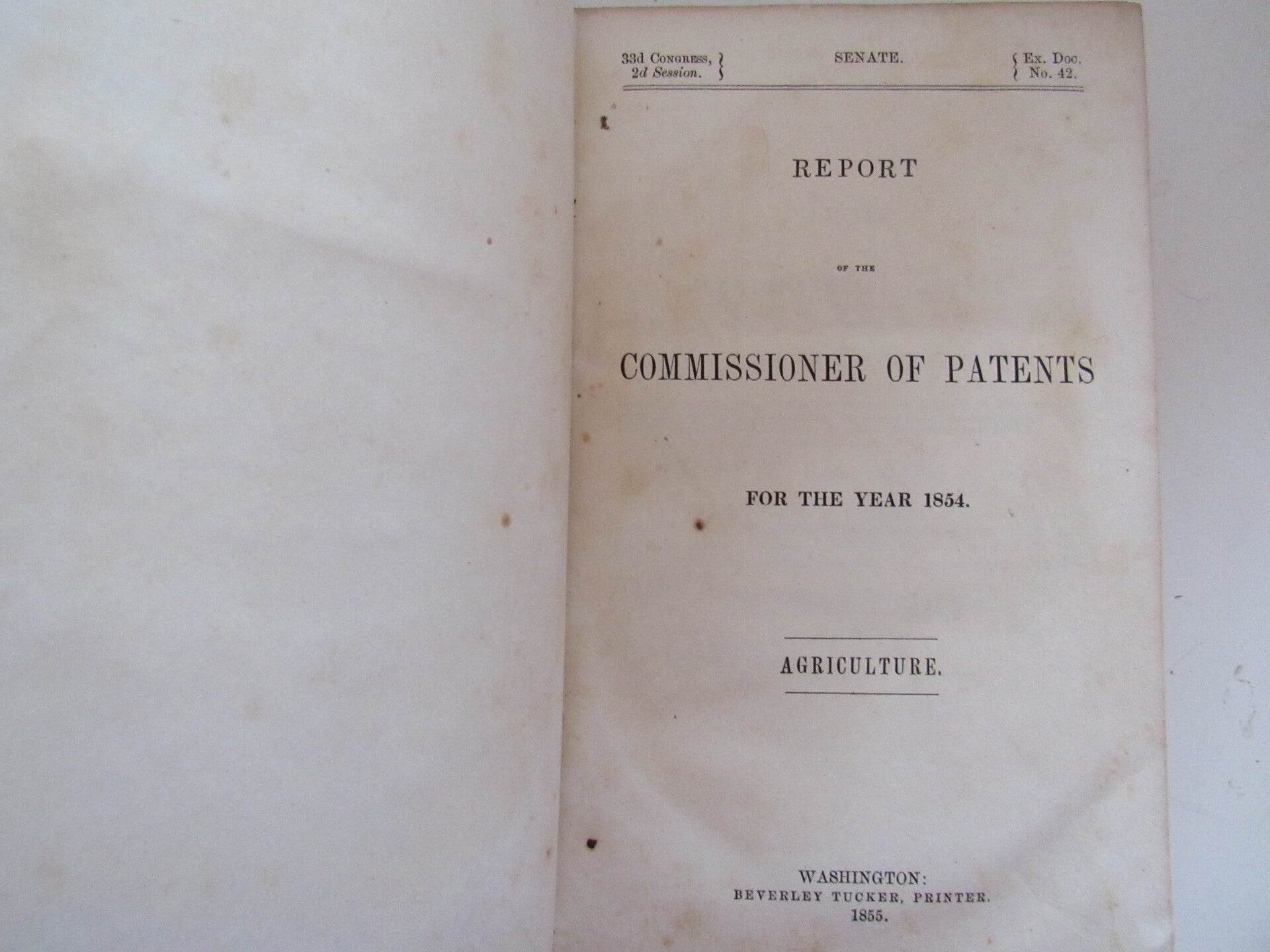 A thorough report on patents, inventions, and developments and discoveries related to Agriculture including numerous illustrations and a number of plates, one of which is full color in the back. Light edge-wear, mild to minimal foxing throughout.