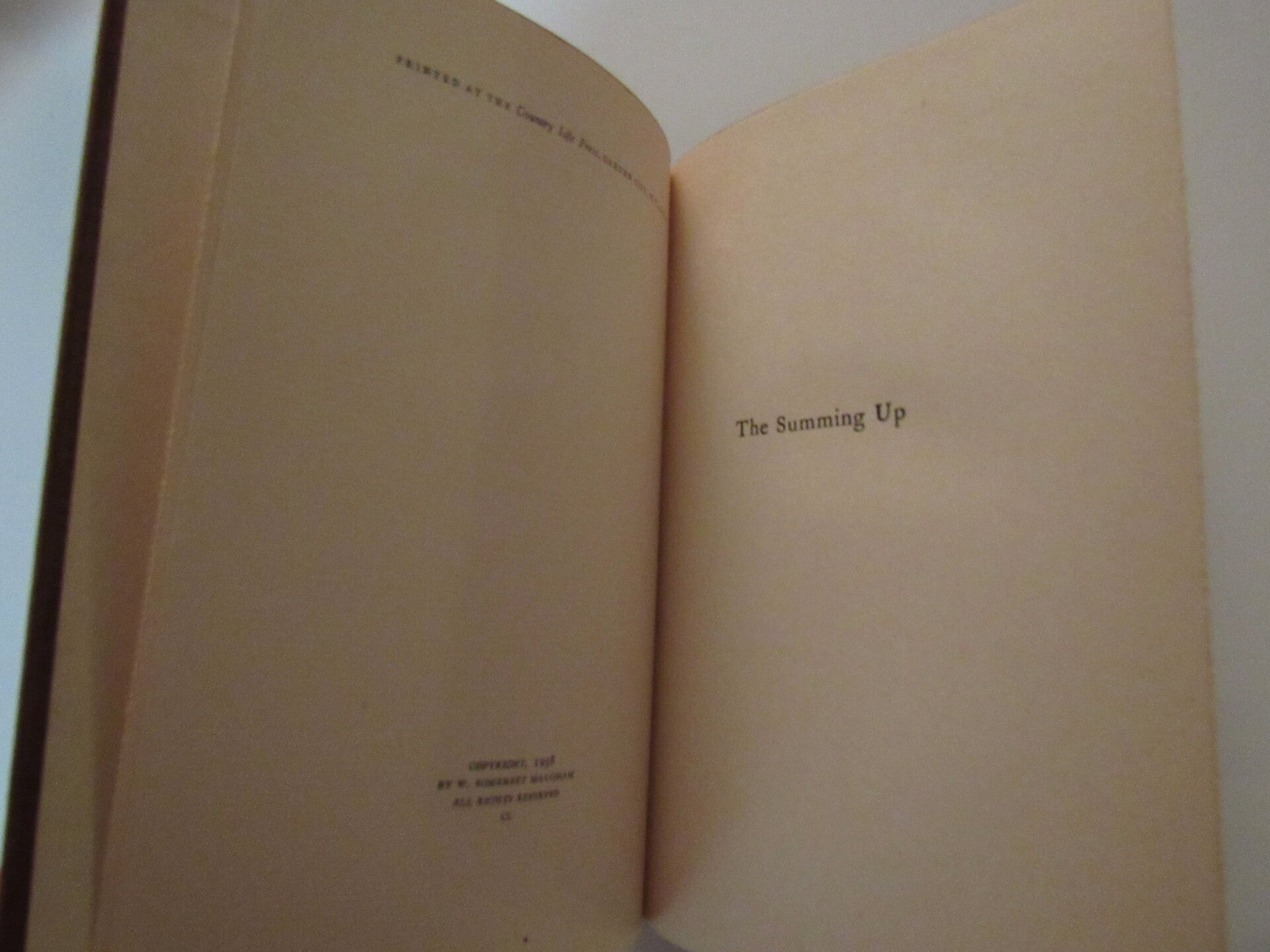 The Summing Up is a literary memoir by W. Somerset Maugham, written when he was 64 years old, first published in 1938. It covered his life from 1890 to 1938. The subject matter includes his childhood, his initial success in theater, his transition from theater to fiction writing, and other miscellaneous topics such as travel, and philosophy. It is a small book filled with memorable quotes.