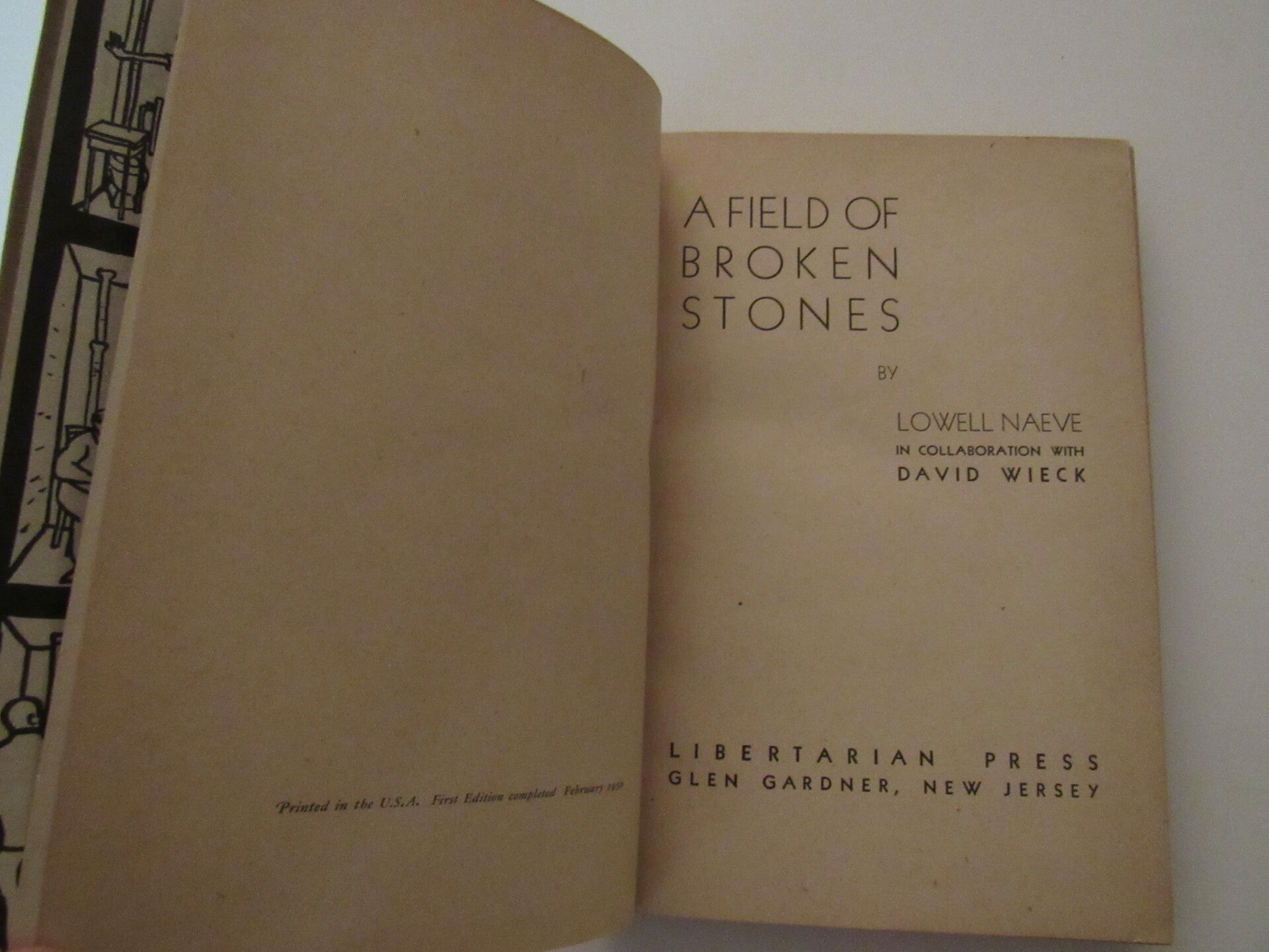 A Field of Broken Stones, first published in 1950 (after numerous rejections by ‘traditional’ publishers, the book was printed by the Libertarian Press), is Lowell Naeve’s account of his experiences as a conscientious objector to the Second World War, starting with his refusal to be drafted, followed by his prison time. The book describes Naeve’s personal transformation as his political and social views develop through talks with fellow inmates, his writing, and his drawings and paintings (some of which are included in the book). Naeve was eventually released from prison on May 14, 1946. Naeve would continue to be a social activist, and also taught art at a school in Vermont. He eventually settled in Creston, British Columbia, where he passed away on August 21, 2014 at the age of 97.