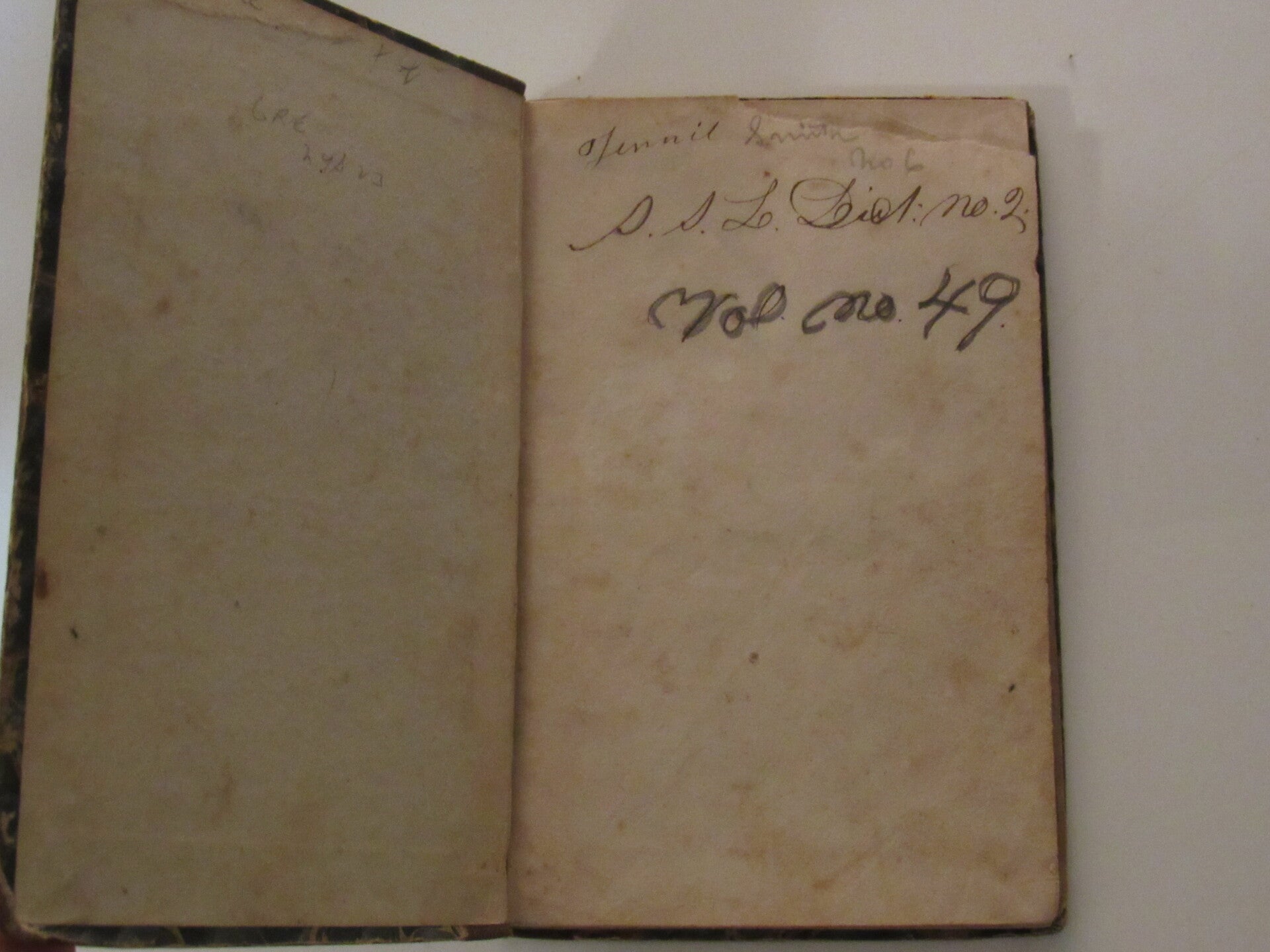 Second book (1846) on Heathen Books. Marbled board with cloth spine. Foxing and expected wear from age. Boards slightly scuffed and some fraying of spine. Still well bound.