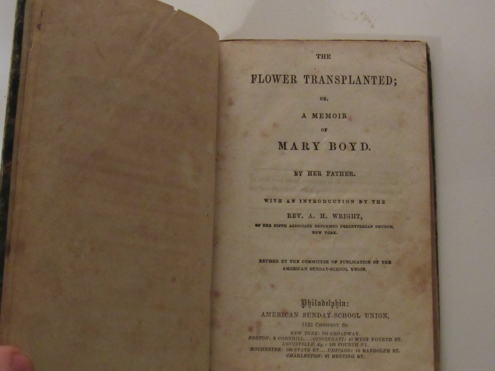 The Flower Transplanted or Memoir of Mary Boyd by her father.