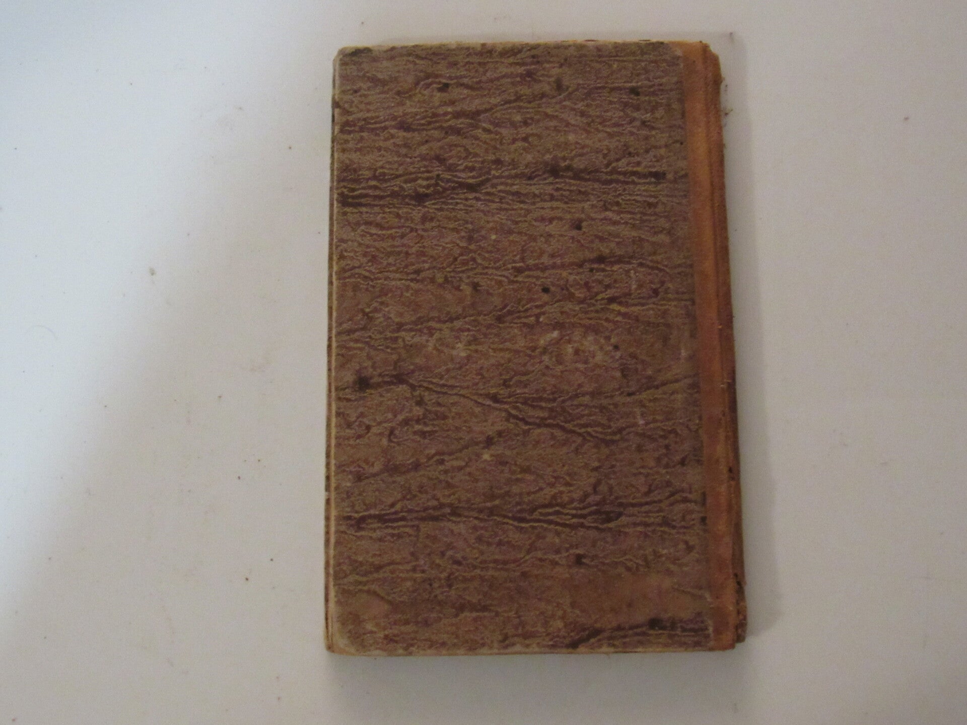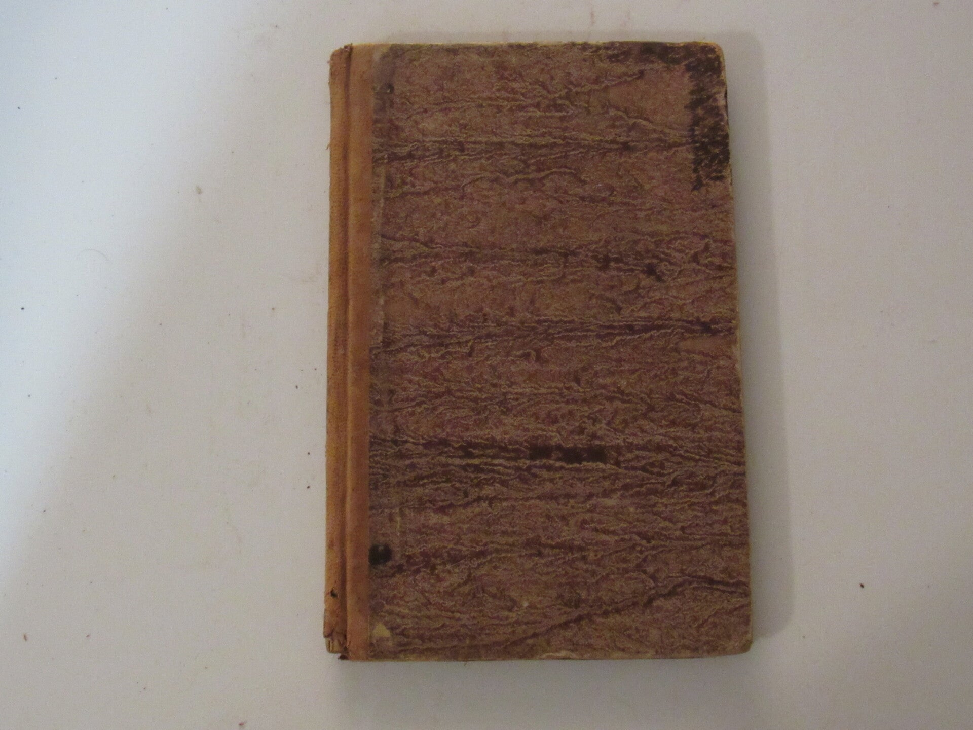 Marbled boards with leather spine. Ink mark along upper edge of spine bleeds into some of the pages. Mild foxing, tightly bound. Good condition.