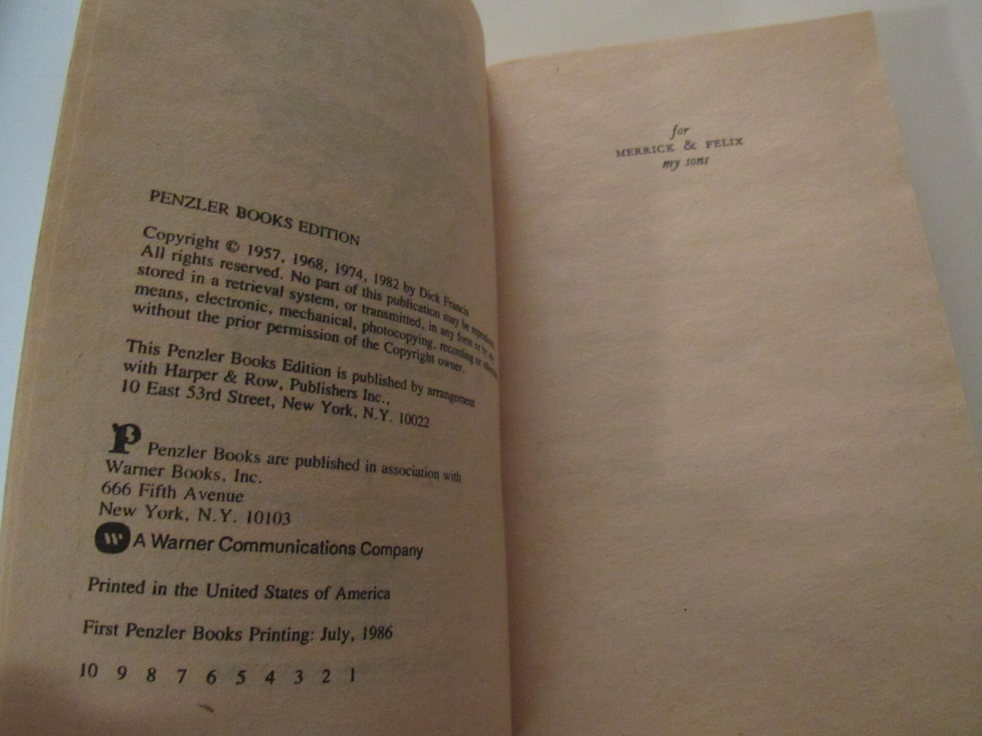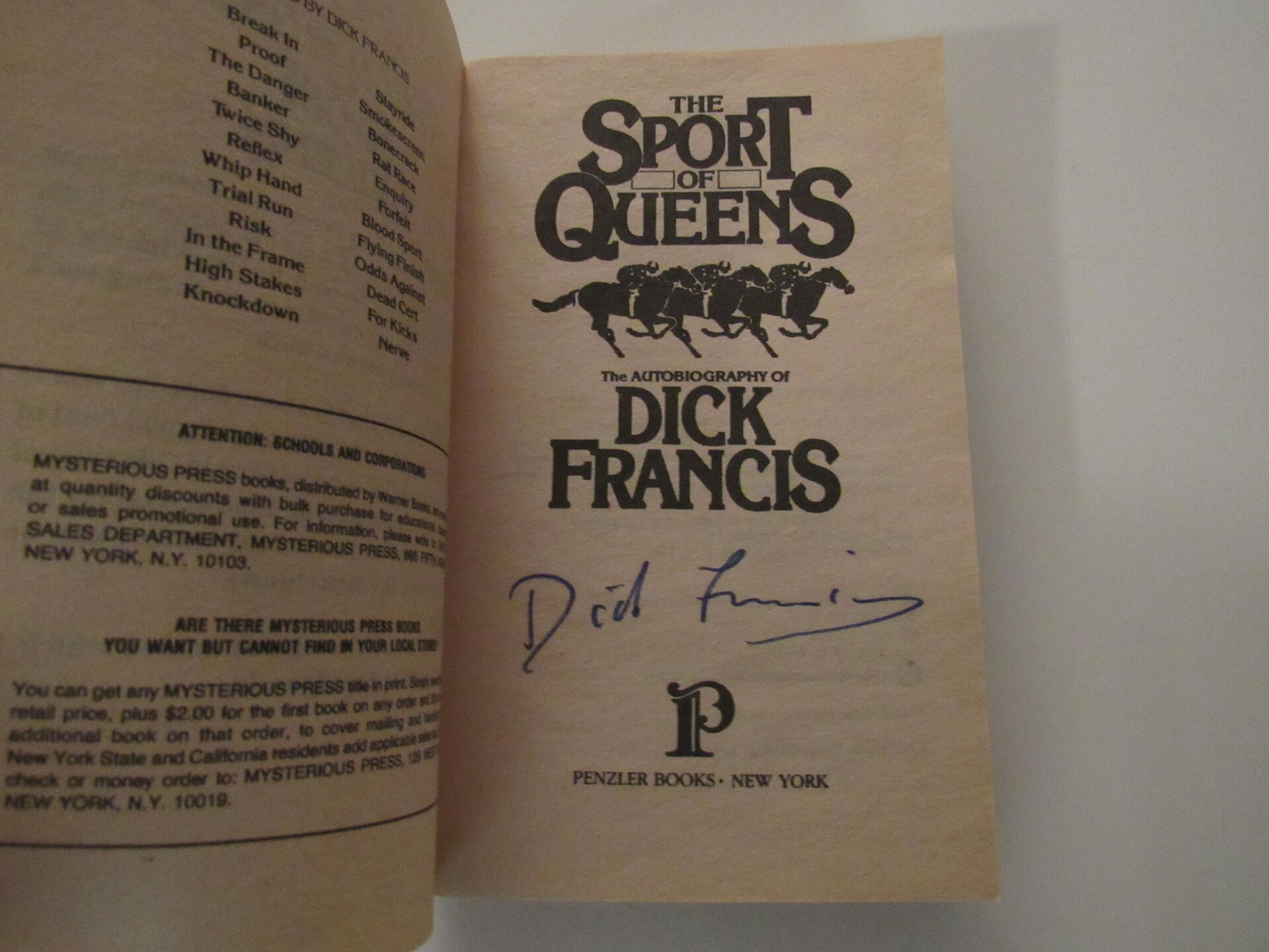 The autobiography of Dick Francis, author of a dozen and more best-selling mystery novels, all of which have a horseracing background. "Every steeple chase jockey has two ambitions, one is to ride more winners than anyone else in one season and become Champion Jockey for that year. The other is to win the Grand National at Aintree. This is the story of how with great good fortune I achieved the first, and came so heartbreakingly close to the second." - Dick Francis