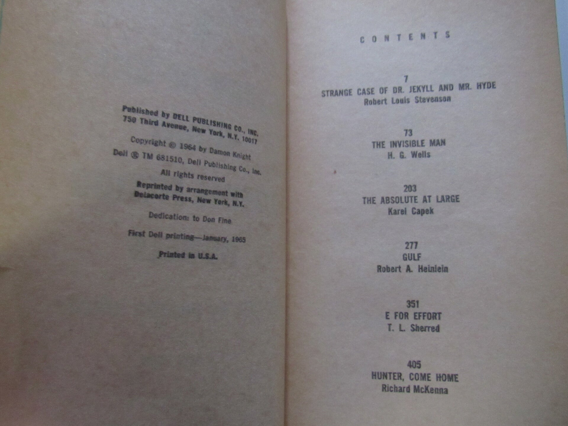 The best, most enduring and most representative short science fiction novels of this century--brought together in a single volume for the first "Strange Case of Dr. Jekyll and Mr. Hyde," "The Invisible Man," "The Absolute at Large," "Gulf," "E For Effort," "Hunter, Come Home."