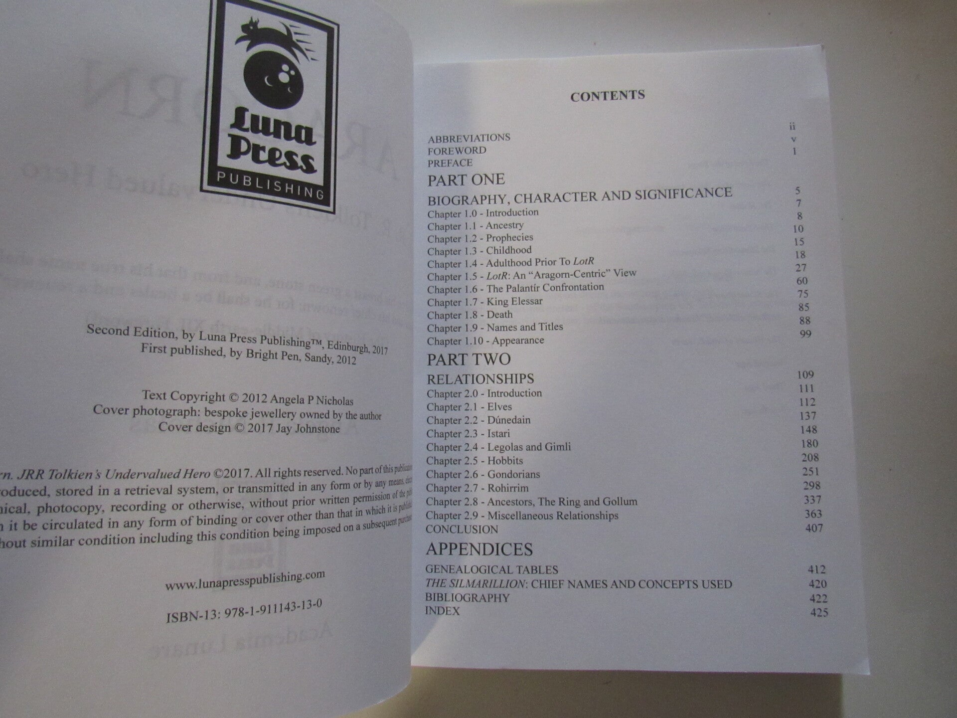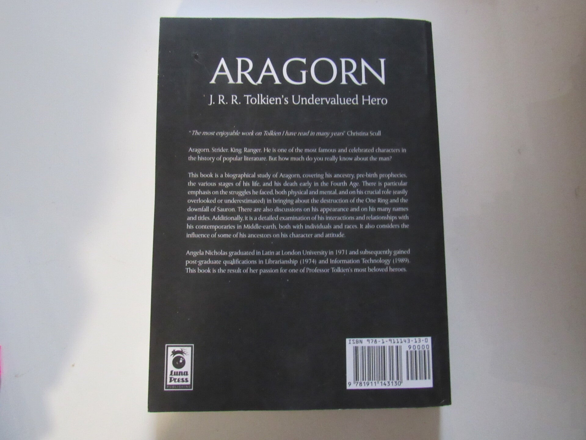 This book is a biographical study of Aragorn, covering his ancestry, pre-birth prophecies, the various stages of his life, and his death early in the Fourth Age. There is particular emphasis on the struggles he faced, both physical and mental, and on his crucial role (easily overlooked or underestimated) in bringing about the destruction of the One Ring and the downfall of Sauron. There are also discussions on his appearance and on his many names and titles. Additionally, it is a detailed examination of his interactions and relationships with his contemporaries in Middle-earth, both with individuals and races. It also considers the influence of some of his ancestors on his character and attitude.