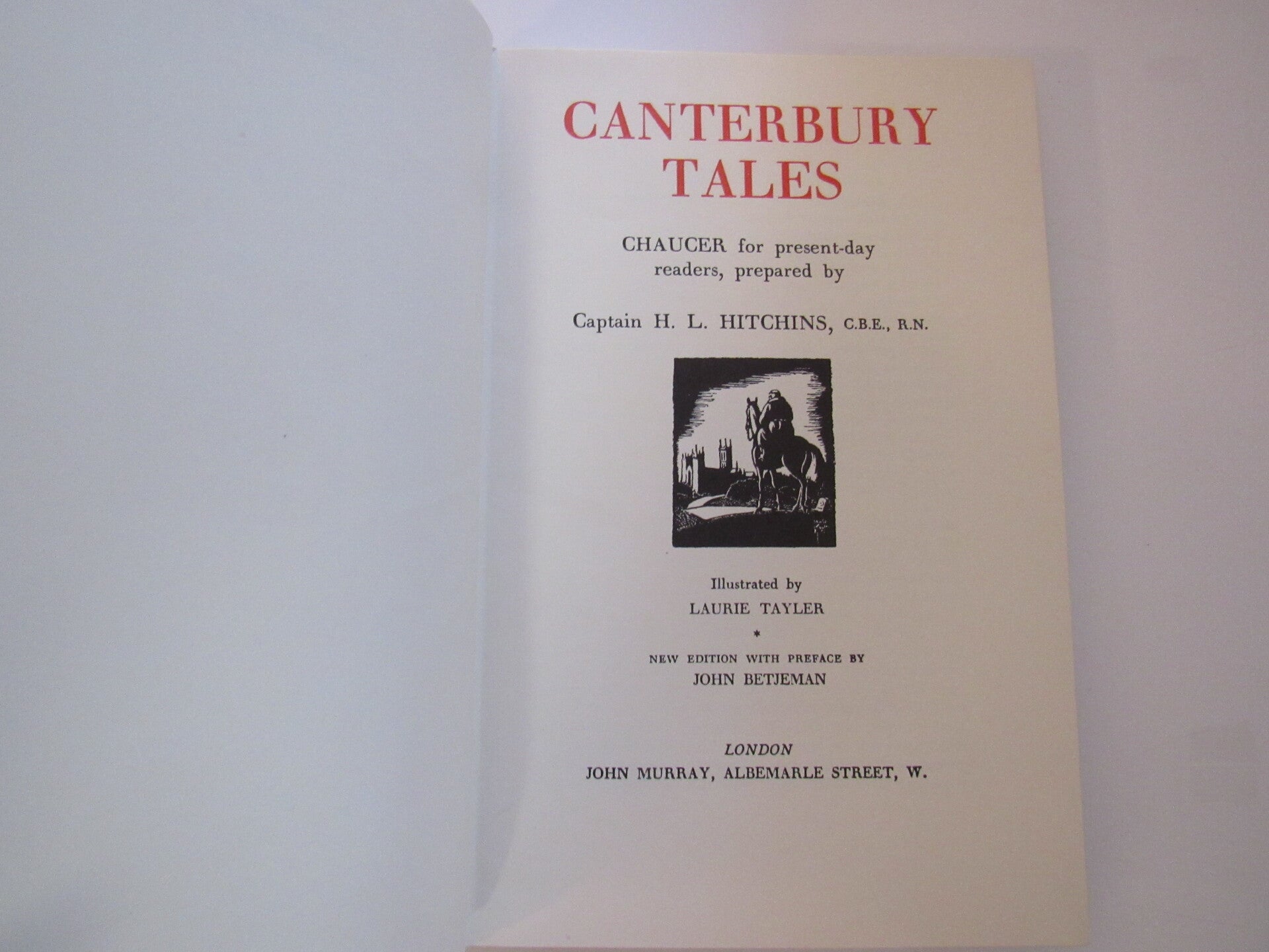 Chaucer for present-day readers prepared by Captain H.L. Hitchins. Illustrated by Laurie Tayler and with a preface by John Betjeman