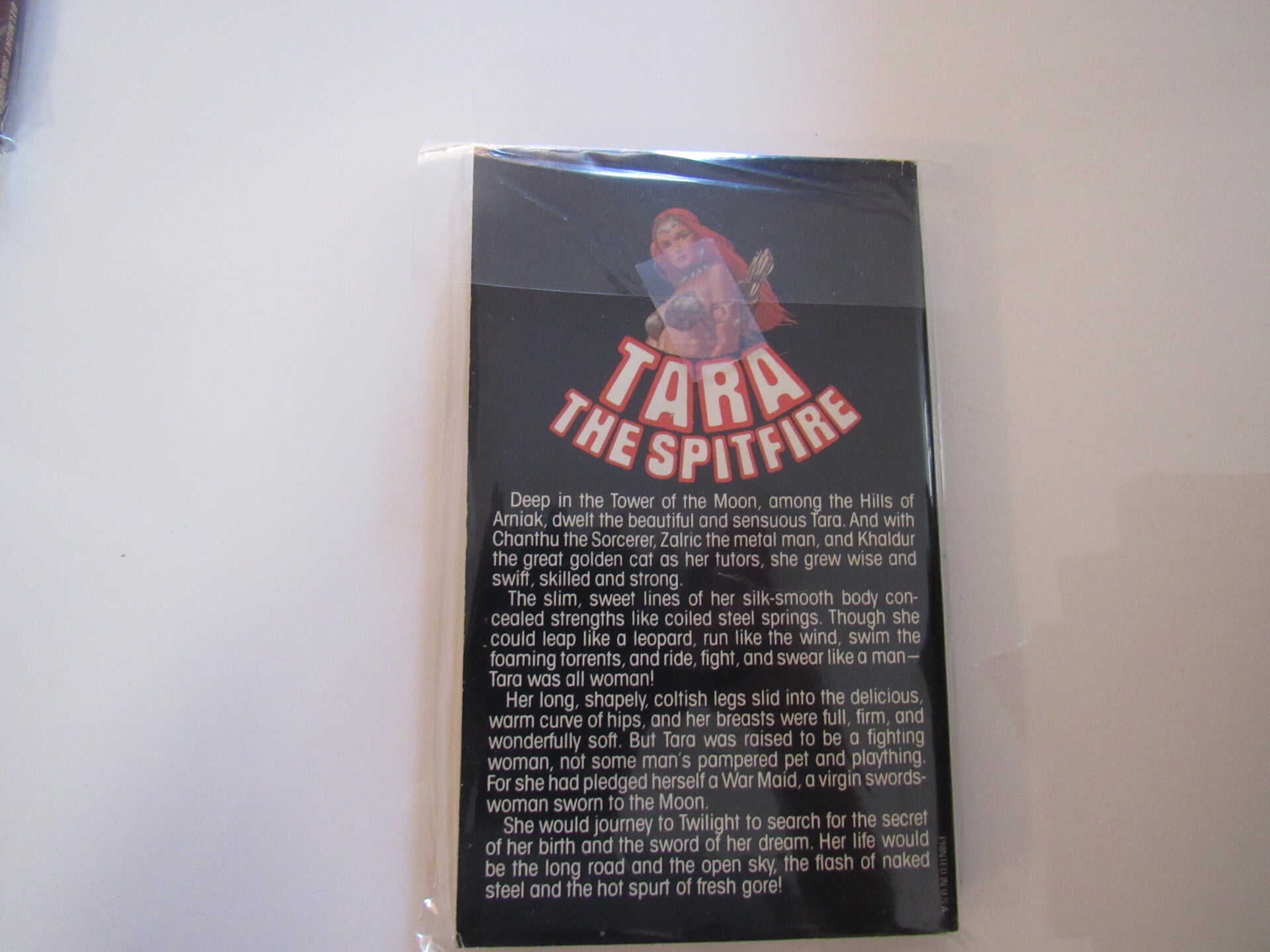 Deep in the Tower of the Moon, among the Hills of Arniak, dwelt the beautiful and sensuous Tara. And with Chanthu, the sorcerer, Zalric the metal man, and Khaldur the great golden cat as her tutors, she grew wise and swift, skilled and strong.