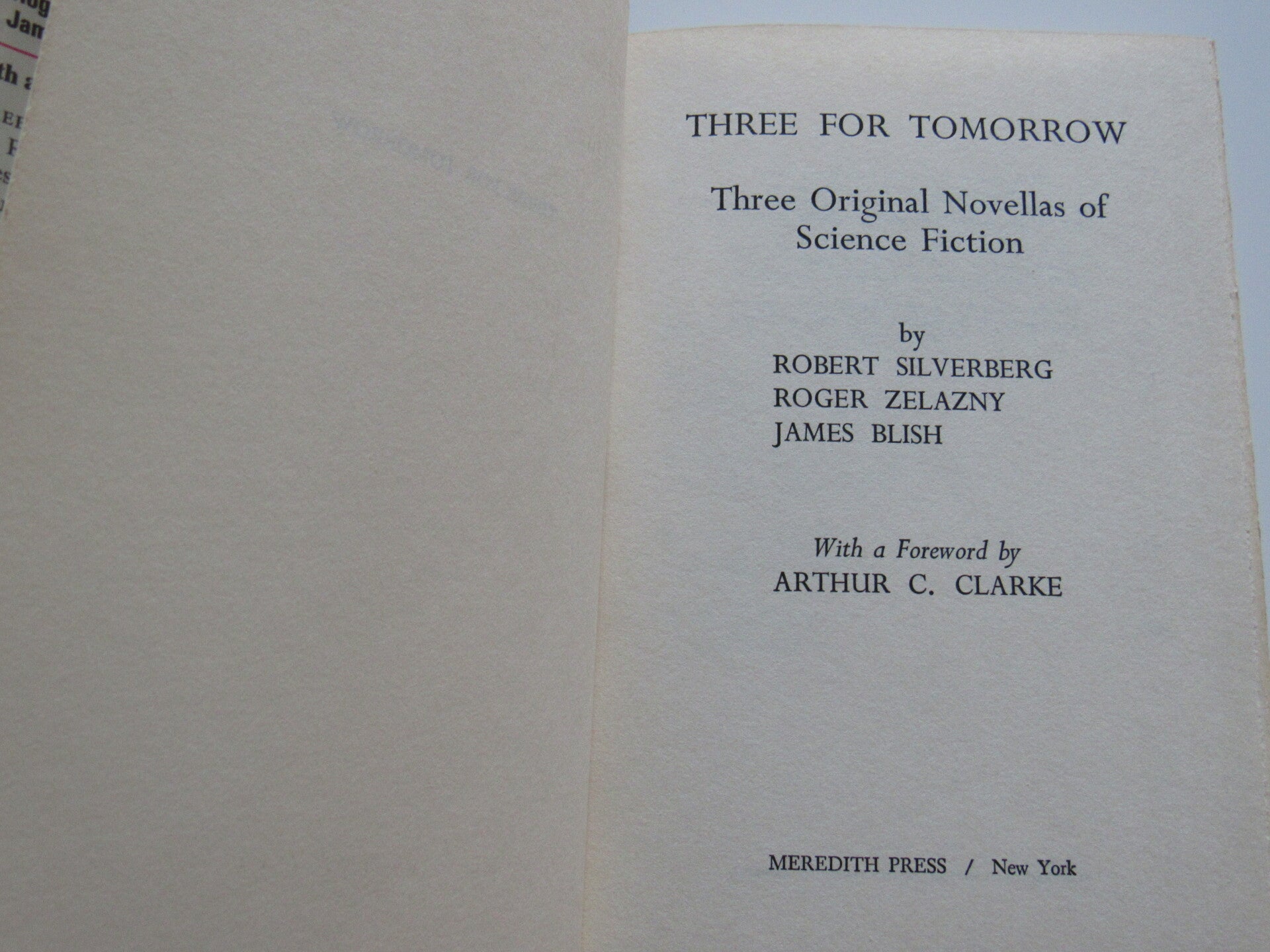 Three For Tomorrow: Three Original Novellas by Robert Silverberg, Roger Zelazny, and James Blish