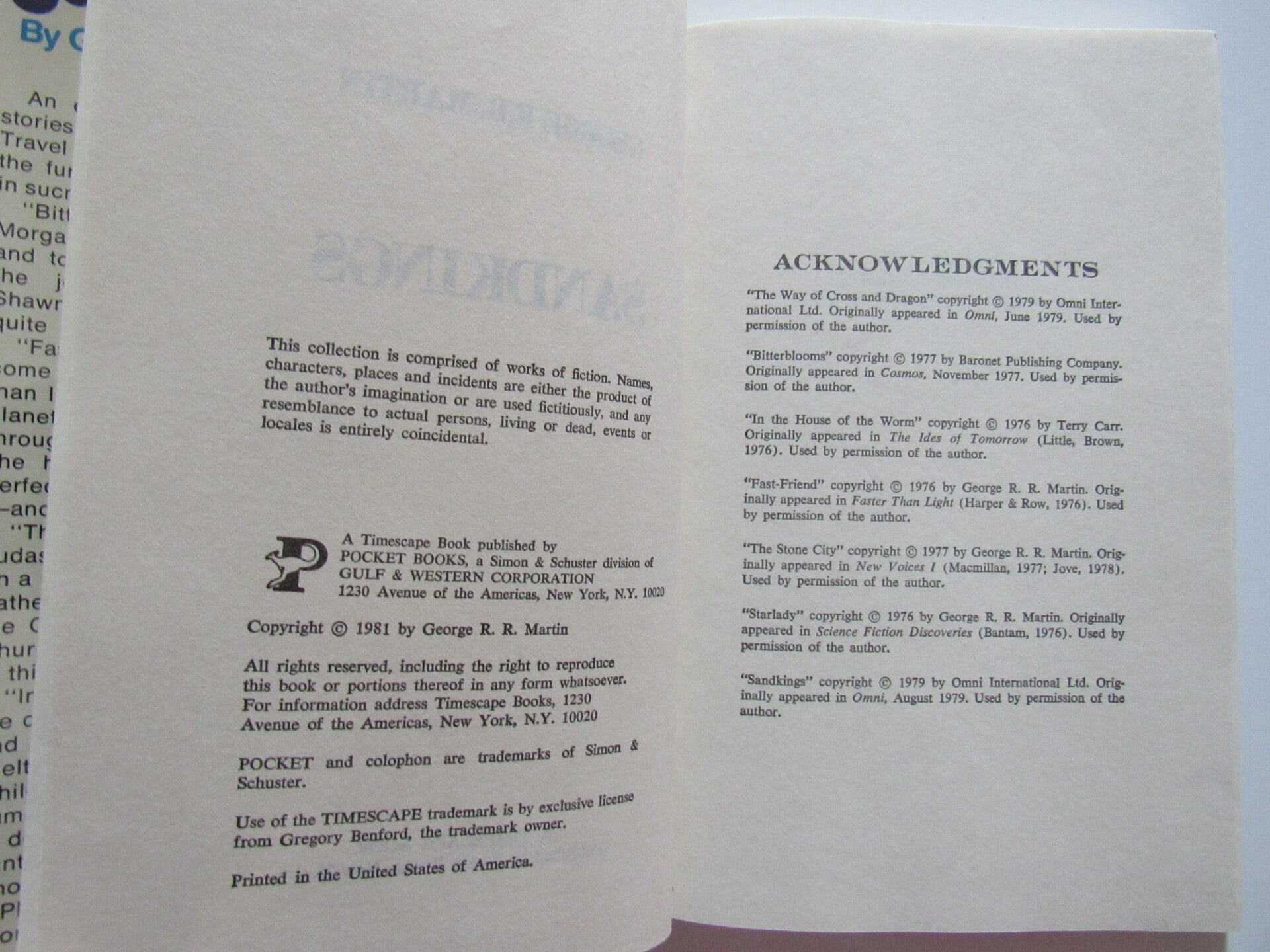 A Collection of George R.R. Martin's short stories including the titular Sandkings...