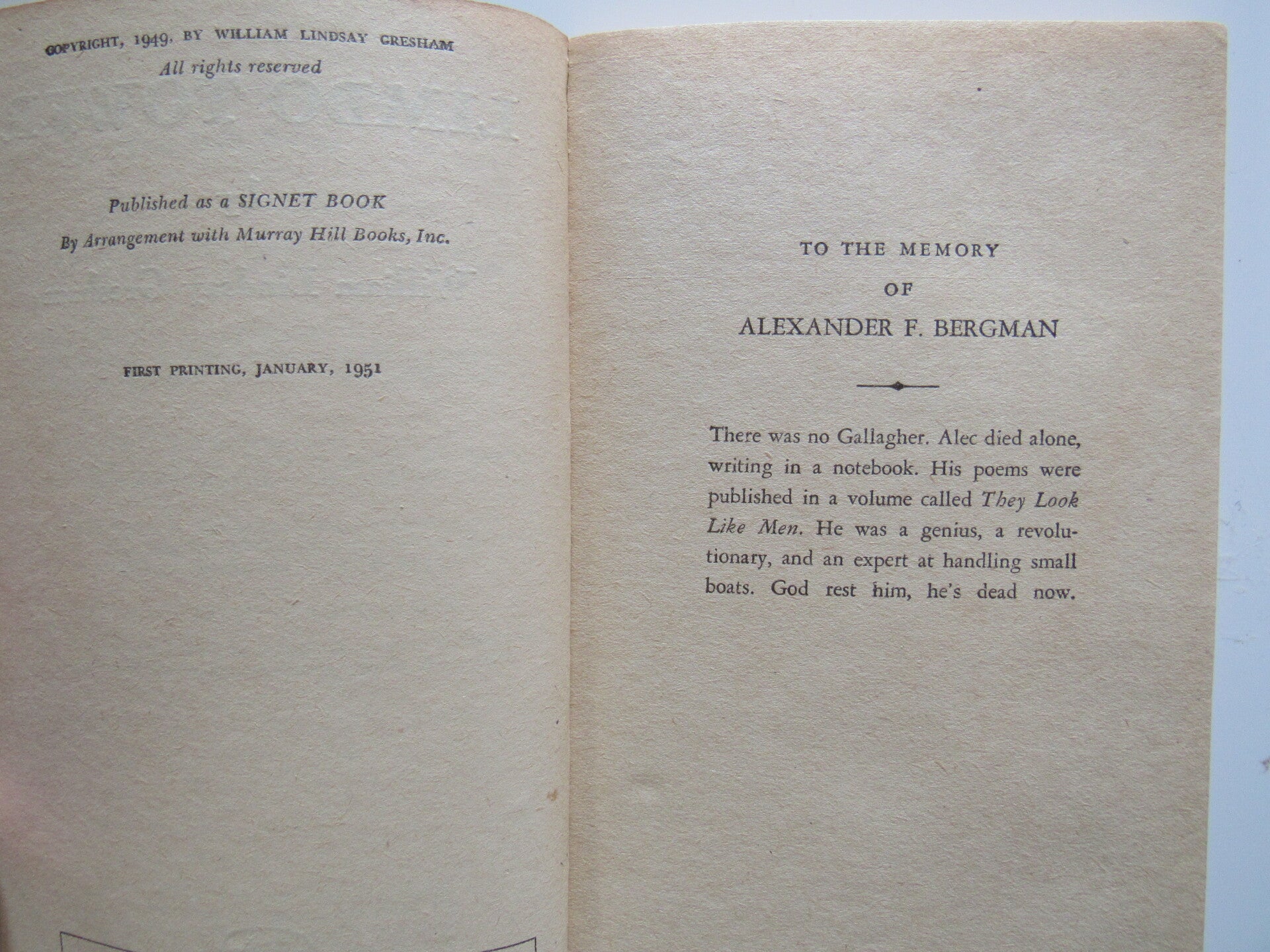 Paperback. Condition: Very Good. 1951. Signet. 1st Printing.