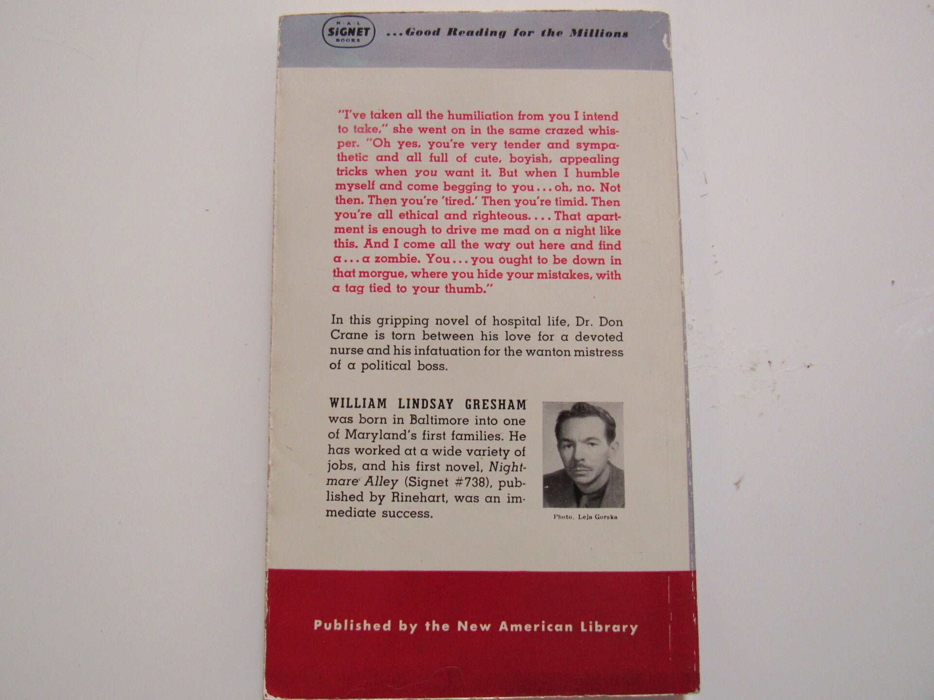 Behind the close confines of a big city hospital, they feared nothing: not the dangers of disease, the terror of the doomed, nor the daily finality of death. Dr. Don Crane and Nurse Anne Gallagher brought the only breath of life into the ward of the desperately ill. To those who lay in fretful half-sleep, clutching dim memories of a body, warm and close, they were fantasy lovers. Yet Don and Anne were afraid to loose their own passion that was caged within them. Inside this white, asceptic rectangle, there was no time to become man and woman, no place for dream to meet dream....