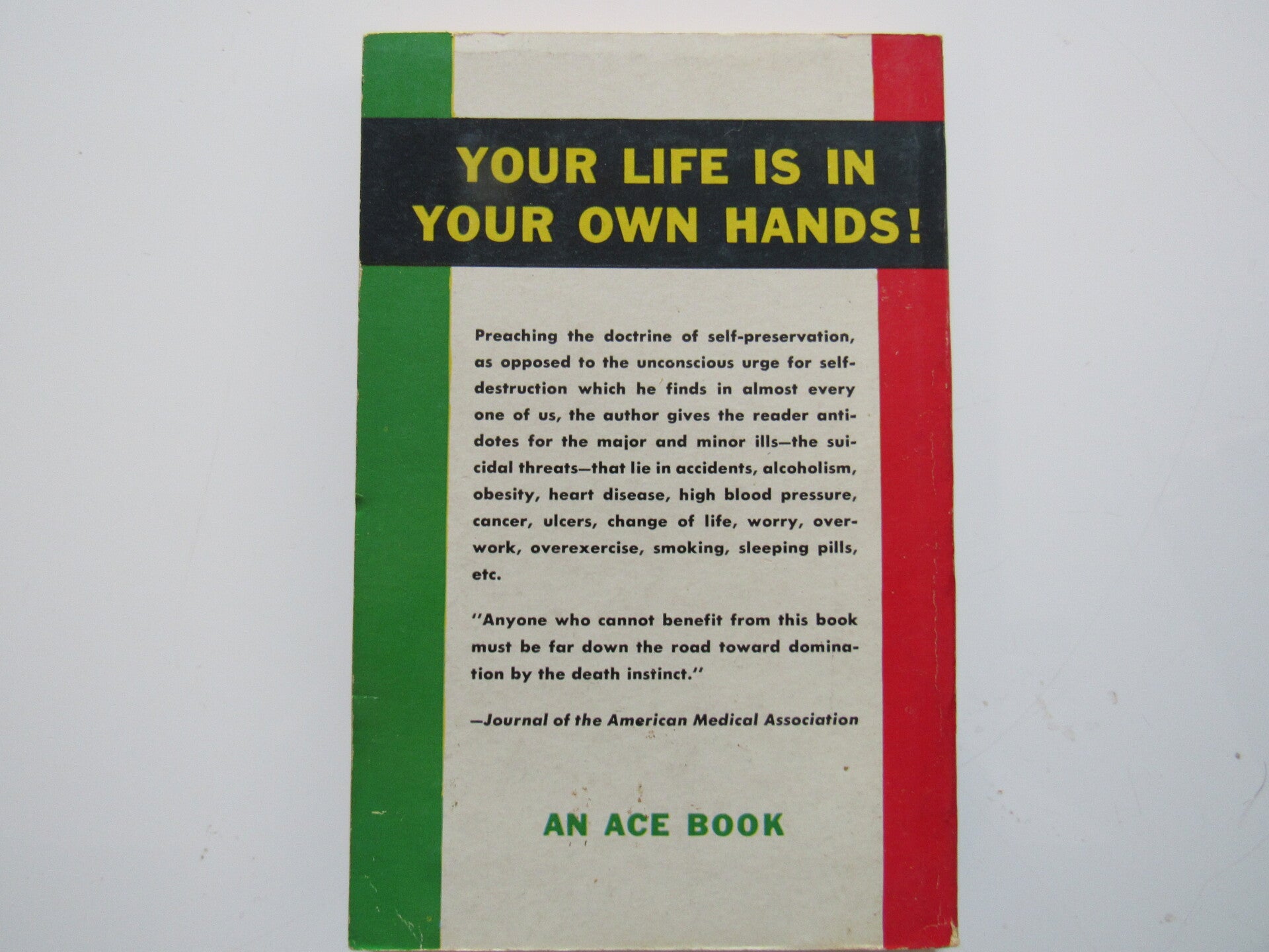 An early self-help book against suicide and self-destruction. Preaching the doctrine of self-preservation as opposed to the unconscious urge for self-destruction which he finds in almot every one of us, the author gives teh reader antidotes for the maor and minor ills - the suicidal threats - that lie in a variety of behaviors.