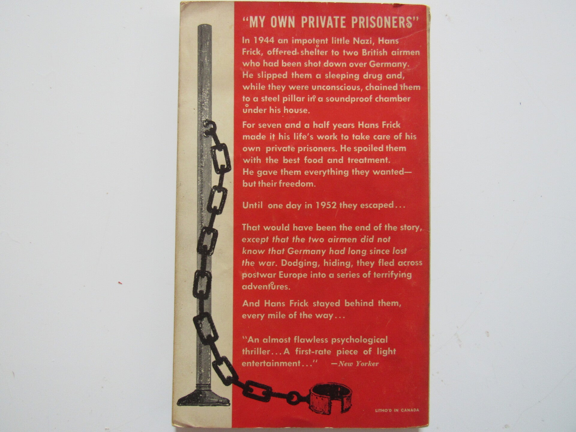 Two British airmen, Wilson and Connolly, are incarcerated in a cellar in Bonn: their captor, Corporal Frick, has kept them there ever since the day when he hid them from an infuriated mob and the Gestapo after a raid. He treats his prisoners with kindness, but he has never dared to let them go. Wilson has discovered in himself a talent for writing: Connolly has spent the time brooding about his loved wife and trying to plan an escape. One morning the prisoners realize that al lis not well with their jailer, and when, driven by ill-health, Corporal Frick is compelled to release them, the irony of their imprisonment and escape suddenly dawns on them.