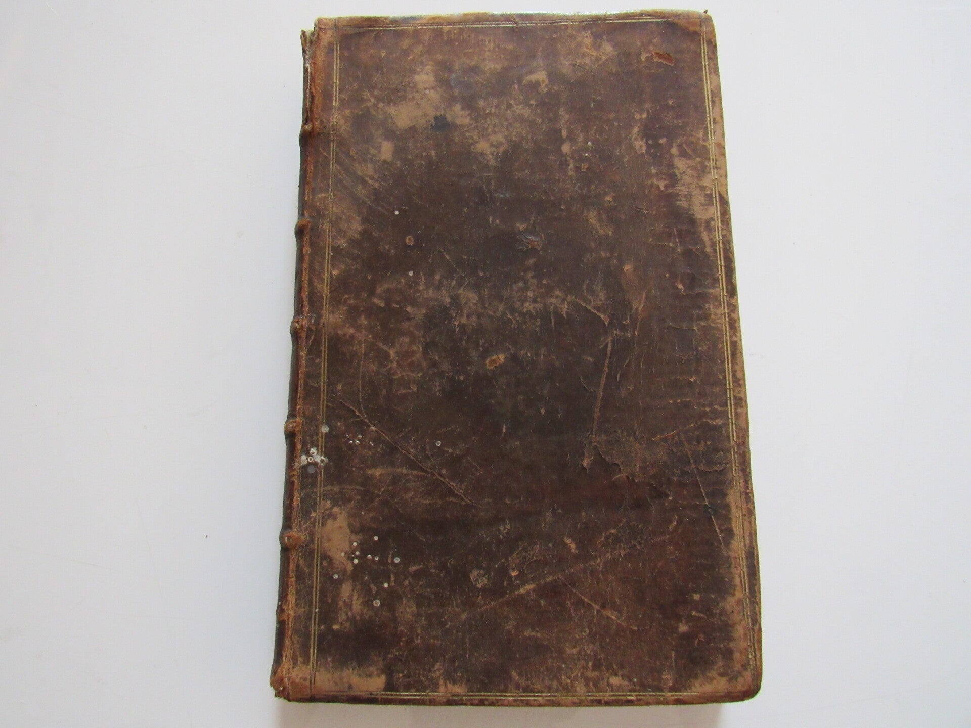 Leather bound, with wear to cover including scuffs, thinning, spider marks, rubbed and bumped corners. Still tightly bound. Interior clean with little to no foxing. Slight rippling of page, but no stains. Very scarce, as of posting, I can find no other remotely comparable copies.