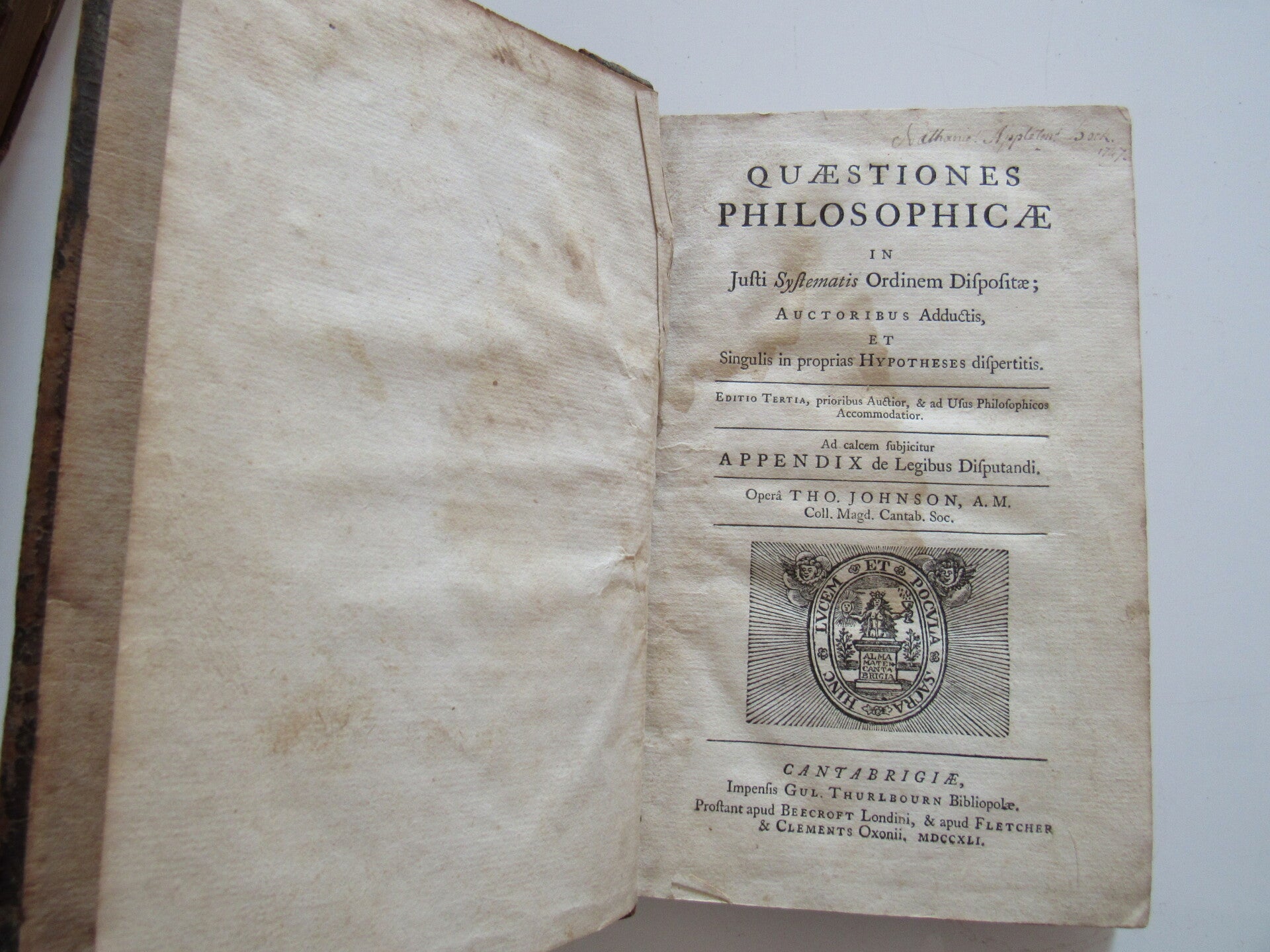 1741 Quaestiones Philosophicae by Thomas Johnson