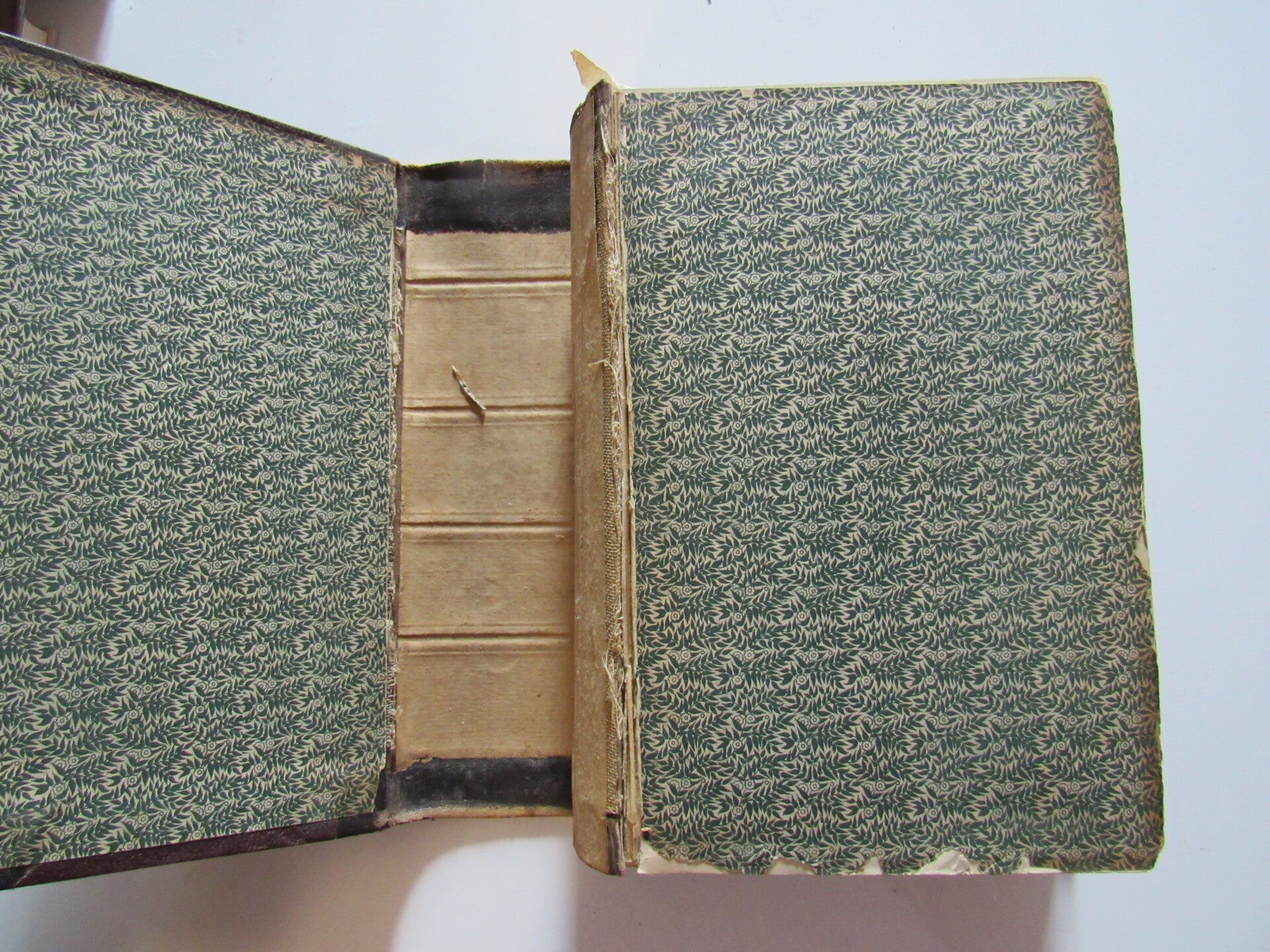 Book is in good condition mostly, but front board has detached and is held together by spine and still attached rear board, first few pages need sewing back in, else in good condition - clean, and still solidly held together. But would benefit from re-binding.