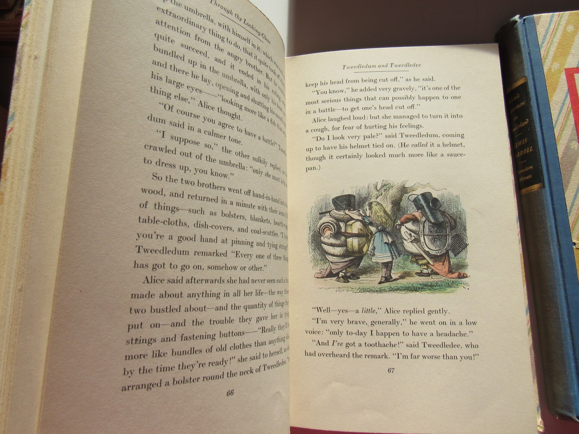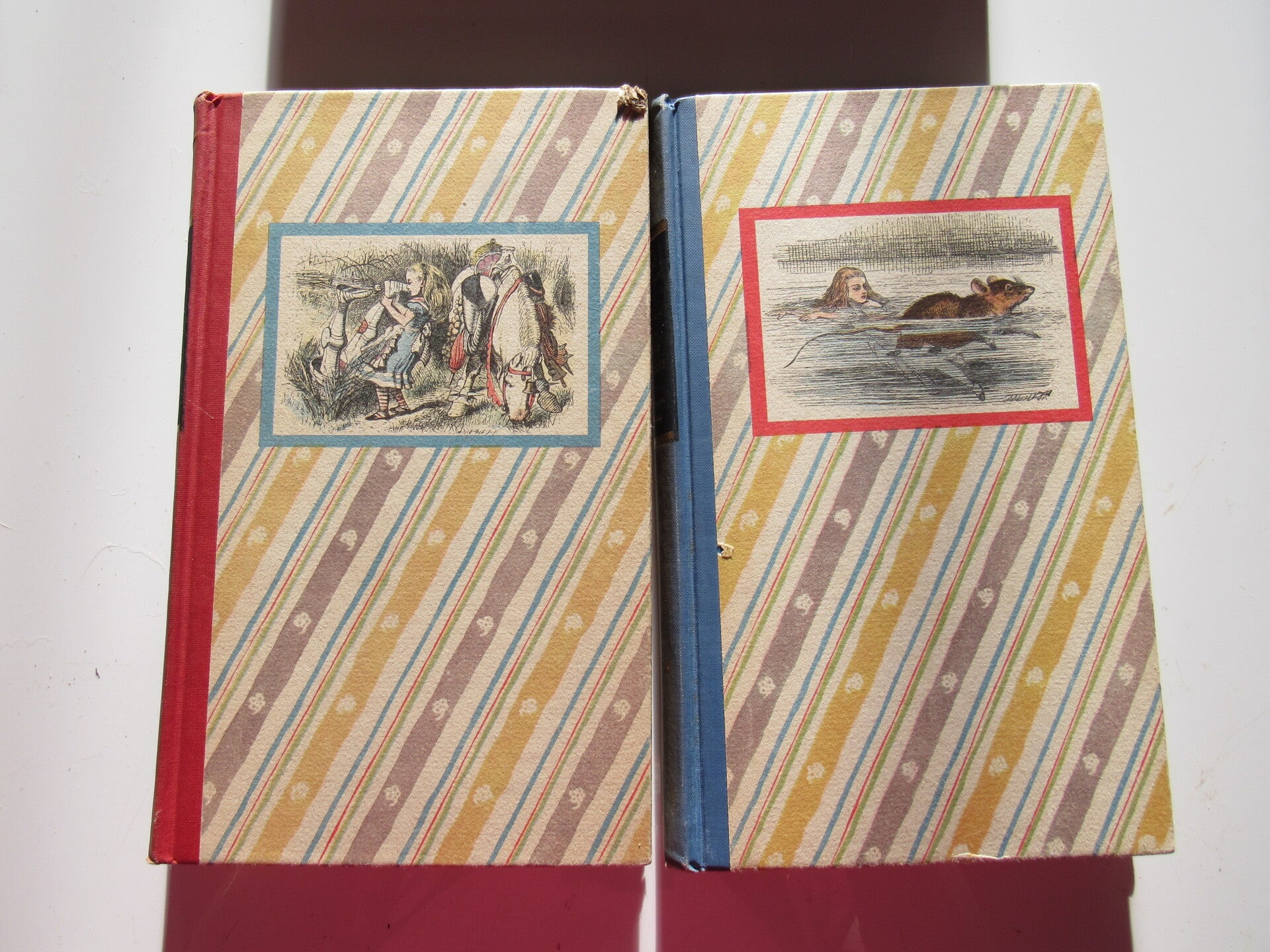 This set of books is renowned for its illustrations by infamous John Tenneil, as well as the coloring which was done by Fritz Kredel in an era specific palate. These two 1946 Random House first editions are some of the most sought after in the world and the complete set with original slipcase even more so. As much as the beauty of the words and the stories they tell, these very special, colored illustrations help bring them to life.