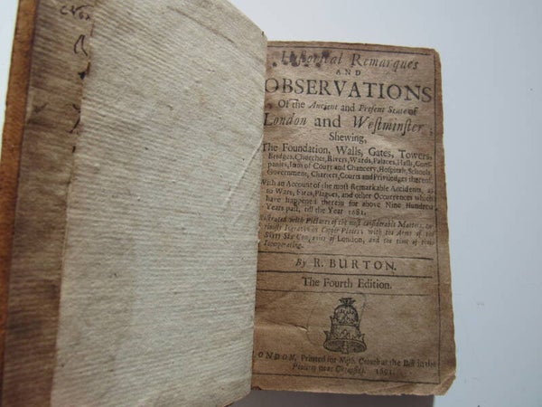 1691 - Historical Remarks and Observations of the Ancient and Present State of London and Westminster by Nathaniel Crouch