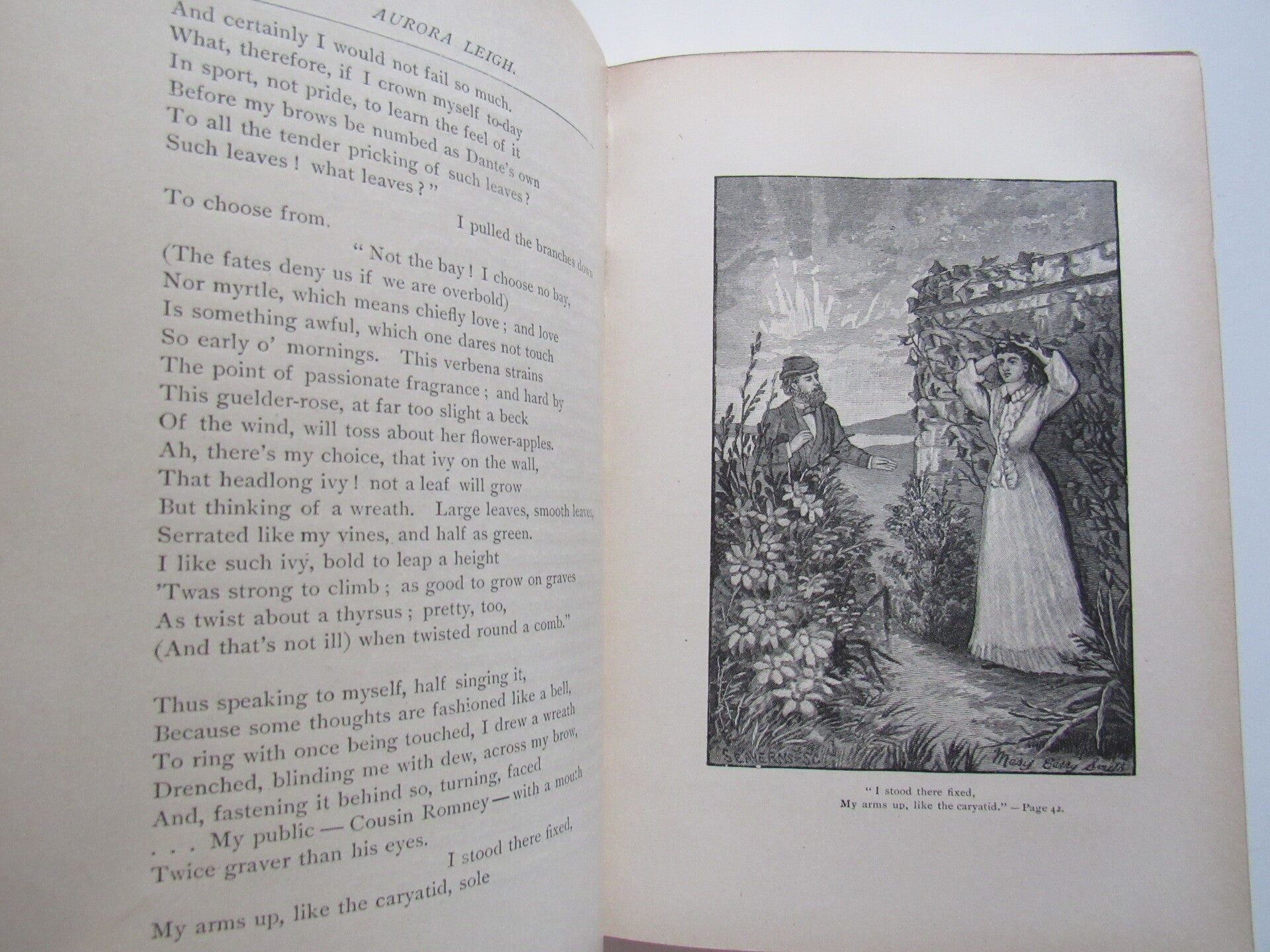 Aurora Leigh is an 1856 verse novel by Elizabeth Barrett Browning. The poem is written in blank verse and encompasses nine books (the woman's number, the number of the Sibylline Books). It is a first-person narration, from the point of view of Aurora; its other heroine, Marian Erle, is an abused self-taught child of itinerant parents. The poem is set in Florence, Malvern, London and Paris. The work references Biblical and classical history and mythology, as well as modern novels, such as Corinne ou l'Italie by Anne Louise Germaine de Staël and the novels of George Sand. In Books 1–5, Aurora narrates her past, from her childhood to the age of about 27; in Books 6–9, the narrative has caught up with her, and she reports events in diary form. The author styled the poem "a novel in verse", and referred to it as "the most mature of my works,