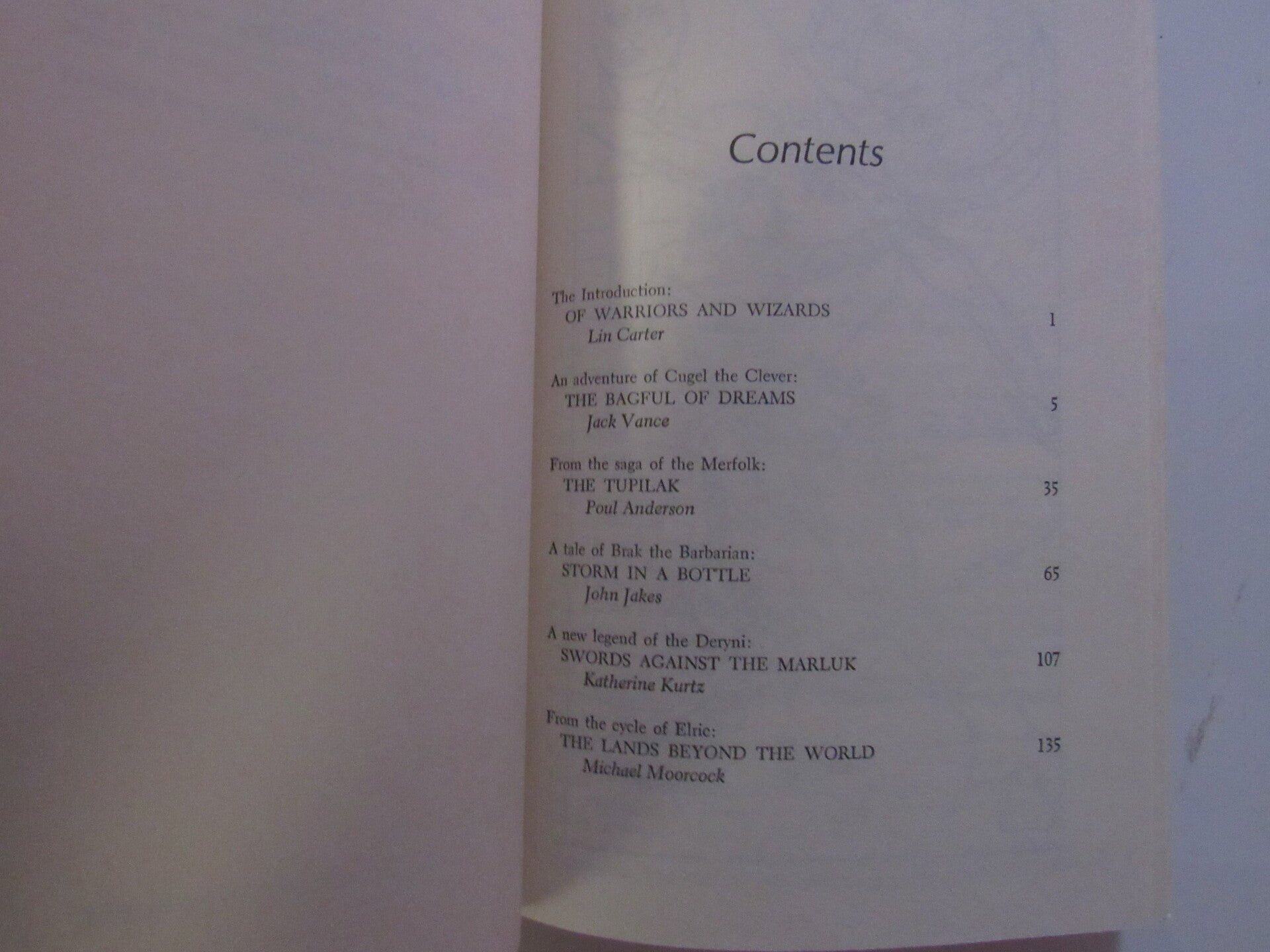 Four volumes of Lin Carter's fantasy anthology with authors such as L Sprague De Camp, Fritz Leiber, Michael Moorcock, and many more! Edited with introductions and notes by Lin Carter.