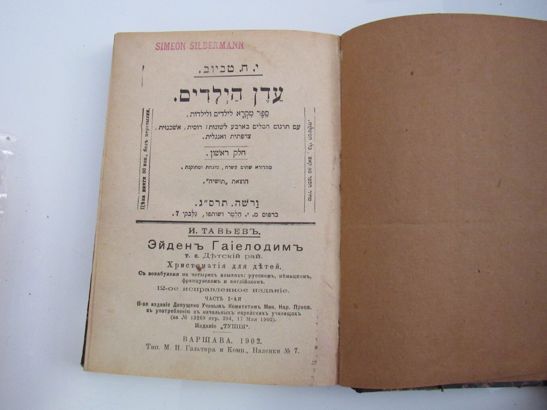A hebrew chrestomathy for children with translation of vocabulary in Russian, German, French, and English