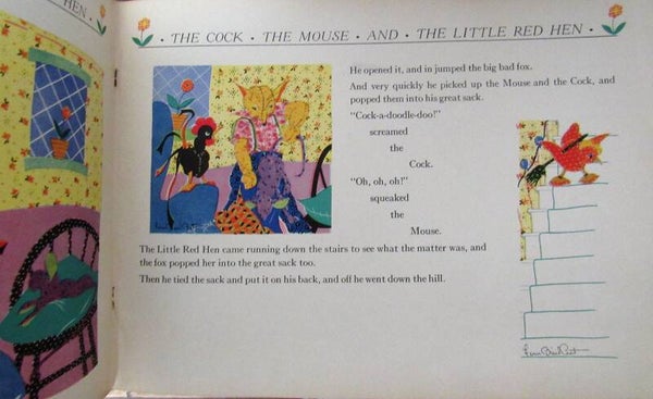 Some wear to spine and corners. A retelling of the story of the Little Red Hen, who teaches her lazy housemates how to do their fair share of work. This rare softcover edition is written and illustrated by Fern Bisel Peat -most well-known for her work for the popular children's magazine Childrens Playmate (1935-2008) Published by the popular childrens publisher Saalfield Publishing Company!