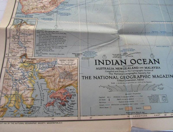 Map. Condition: Very Good. 1941 map of the Indian Ocean published by National Geographic. Published during WWII.