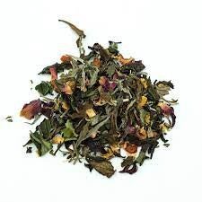 Ingredients: bai mu dan, blue corn flowers, flavoring, apple pieces, sweet blackberry leaves, hibiscus, orange peel, rosehips, cranberry pieces, citric acid, rose petals.