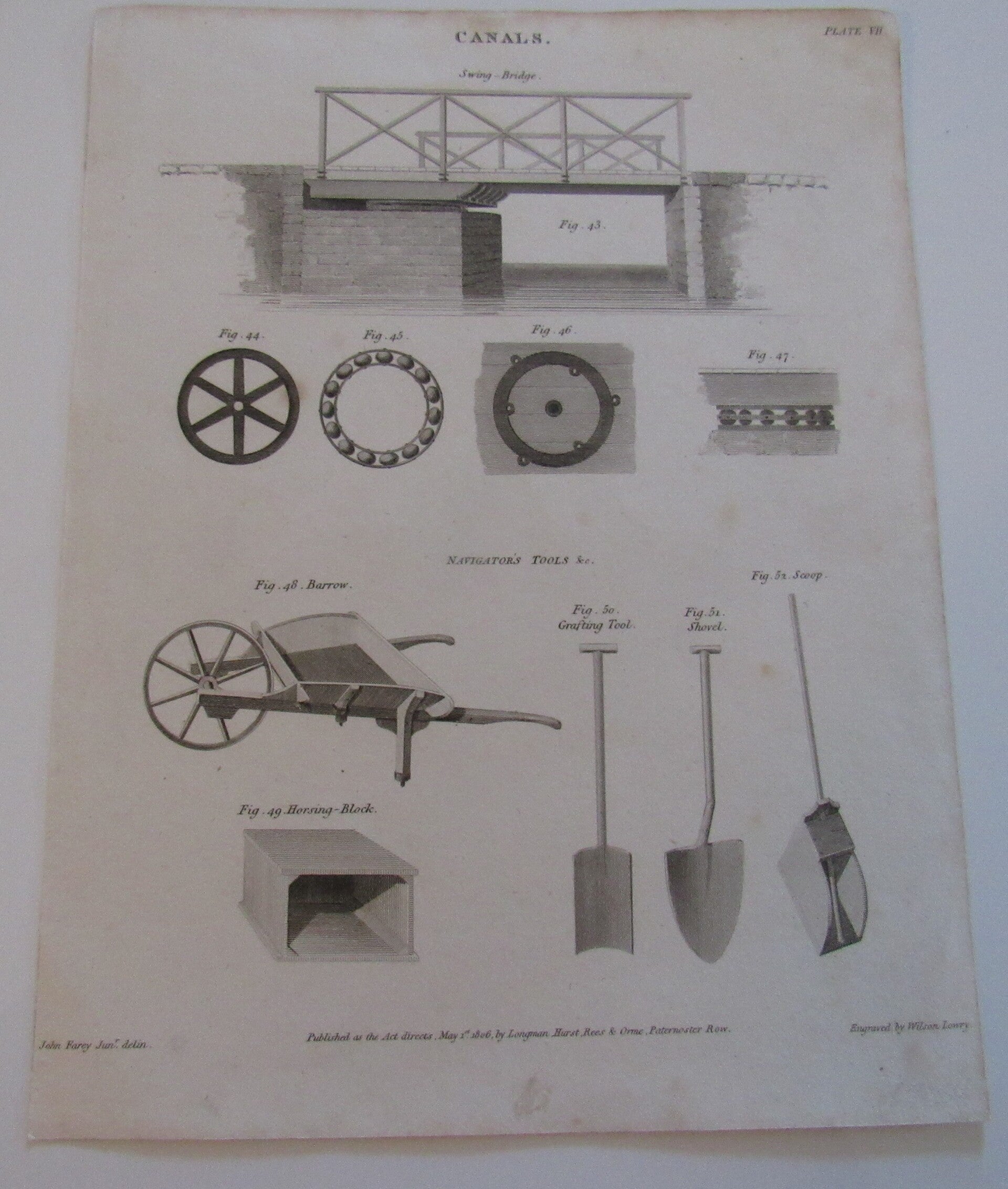 Condition: Good. 1806. Copper Plate print. Canals - Swing Bridge and navigator's tools. Perfect for framing. Size: 8 x 10.5 inch.