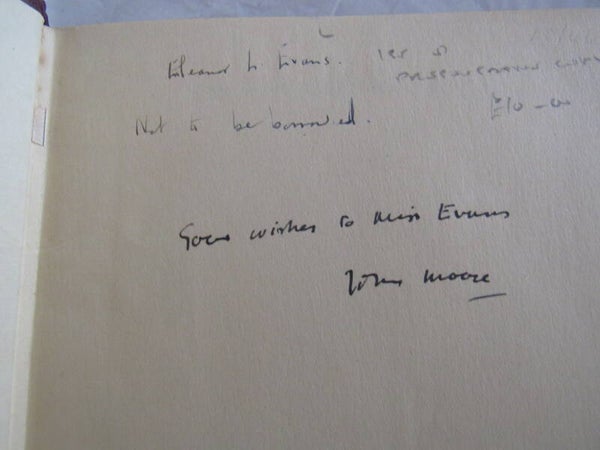 Inscribed "Good wishes to Miss Evans, John Moore"