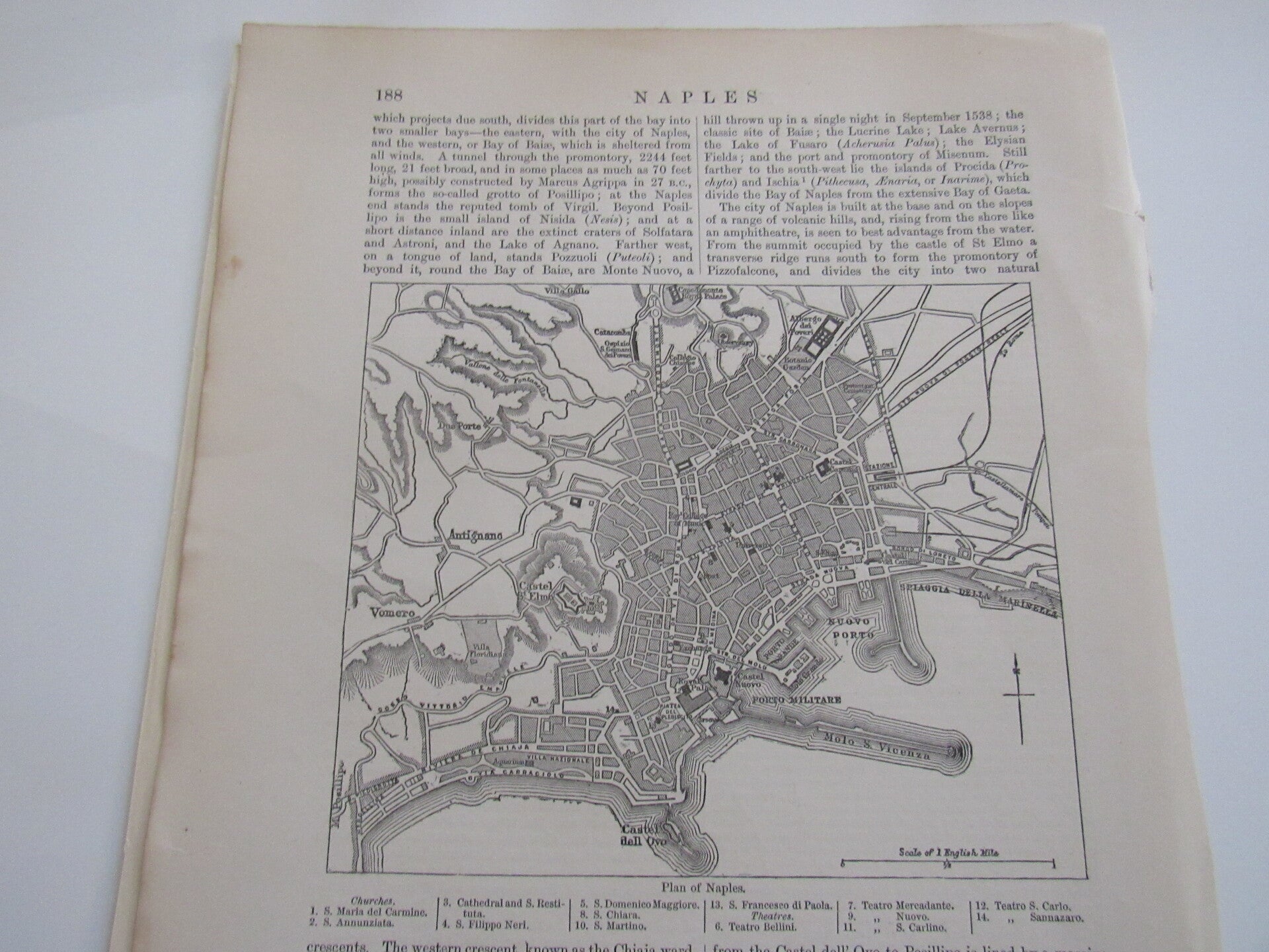 Condition: Good. 1883. Map of the plan of Naples with accompanying text. Perfect for framing. Image Size: 6 x 6.5 inch